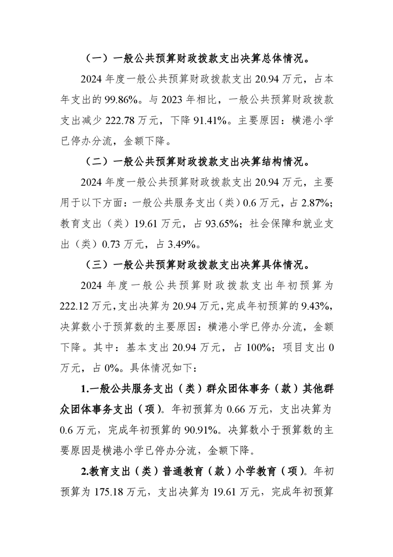 铜陵市横港小学2024年单位决算