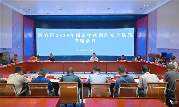 9月28日下午,我区2025年国庆中秋期间安全防范专题会议在智慧铜官召开,区委常委、常务副区长徐进超主持会议并讲话。狮子山高新区、横港化工园区,各镇办社区及区安防减救委成员单位负责人参会。