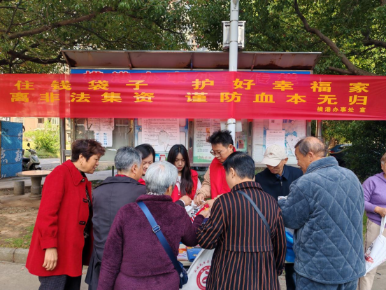 10月22日上午,横港办事处在汇景新城小区开展防范非法集资、防范电信诈骗宣传活动。