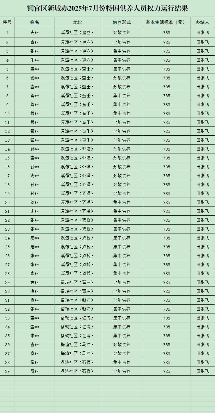 铜官区新城办2025年7月份特困供养人员权力运行结果-铜官区人民政府