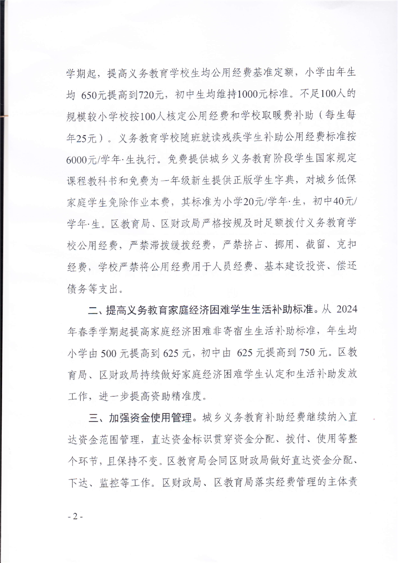 关于2024年城乡义务教育补助经费保障的通知