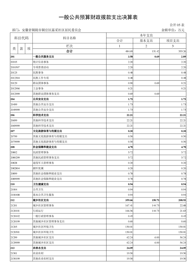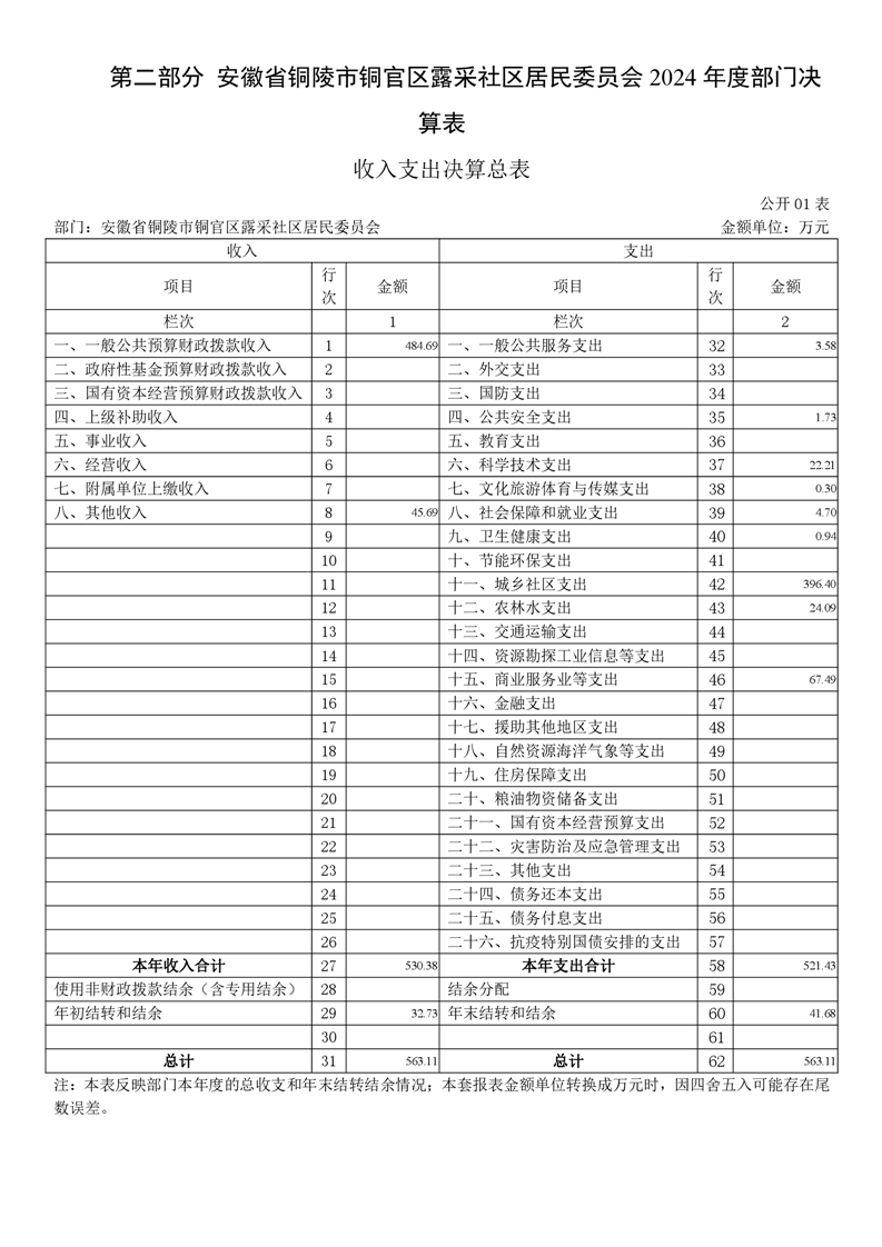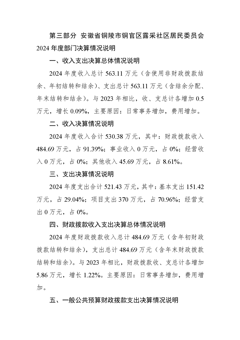 原露采社区居民委员会2024年部门决算-铜官区人民政府