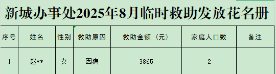 新城办事处2025年8月临时救助发放花名册