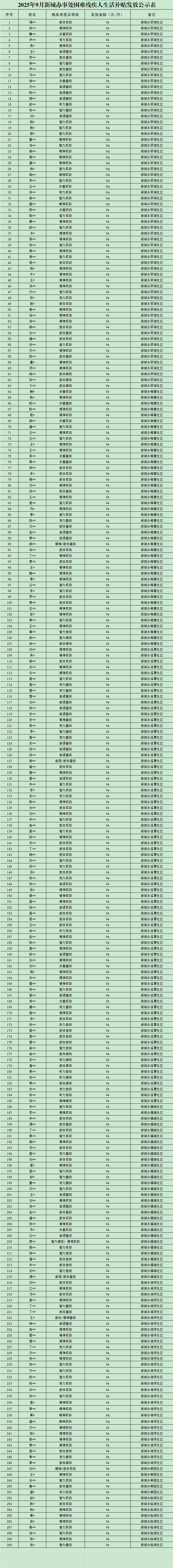 2025年9月新城办事处困难残疾人生活补贴发放公示表
