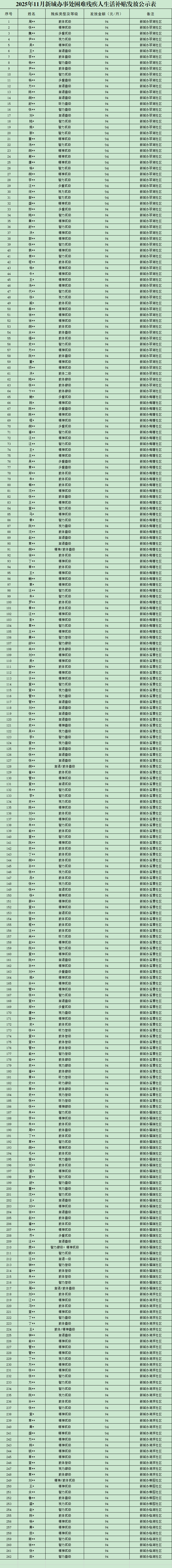 2025年11月新城办事处困难残疾人生活补贴发放公示表