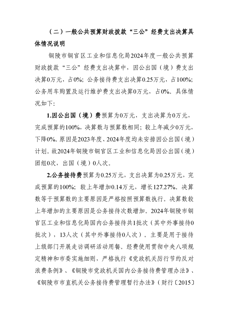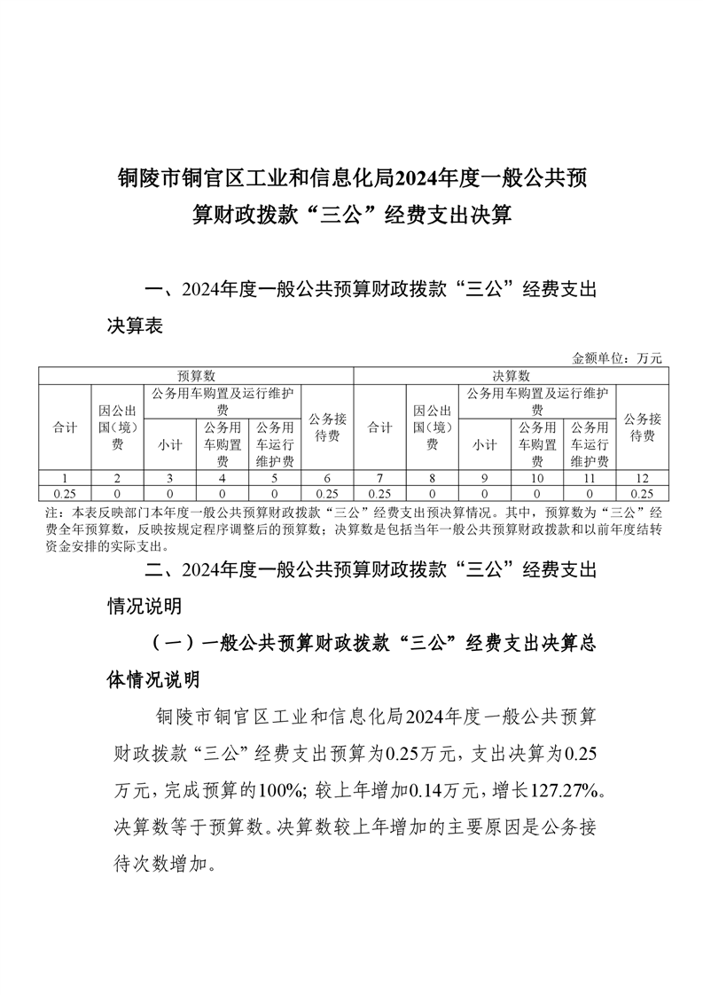 铜官区工业和信息化局2024年度一般公共预算财政拨款“三公”经费支出决算-铜官区人民政府