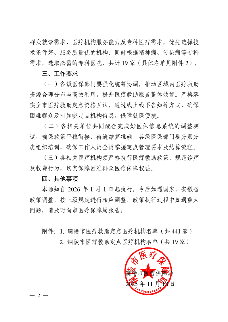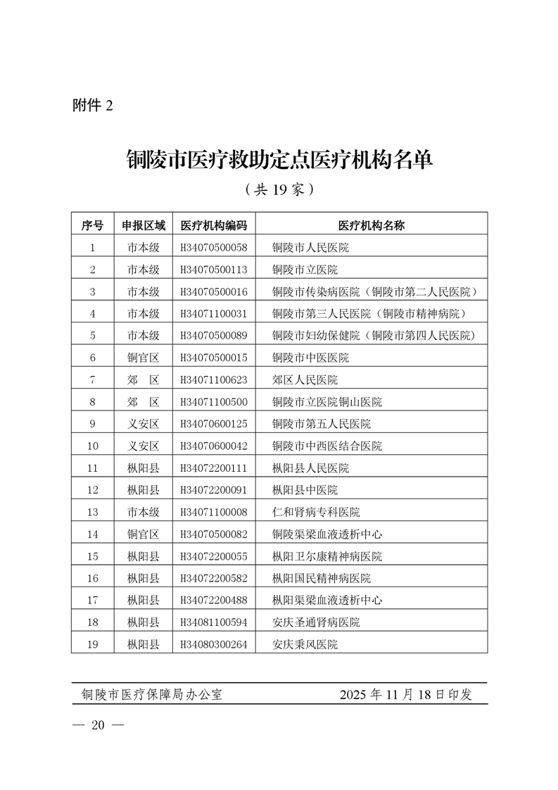 关于确定铜陵市医疗救助定点医疗机构的通知