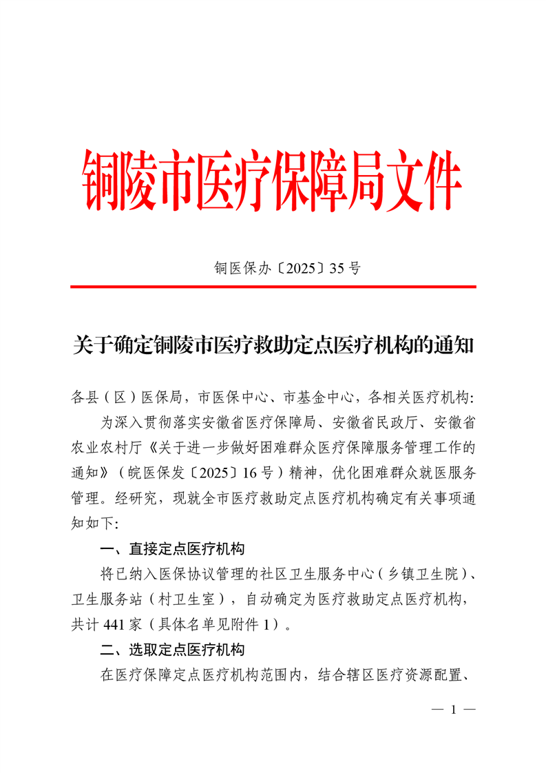 关于确定铜陵市医疗救助定点医疗机构的通知-铜官区人民政府