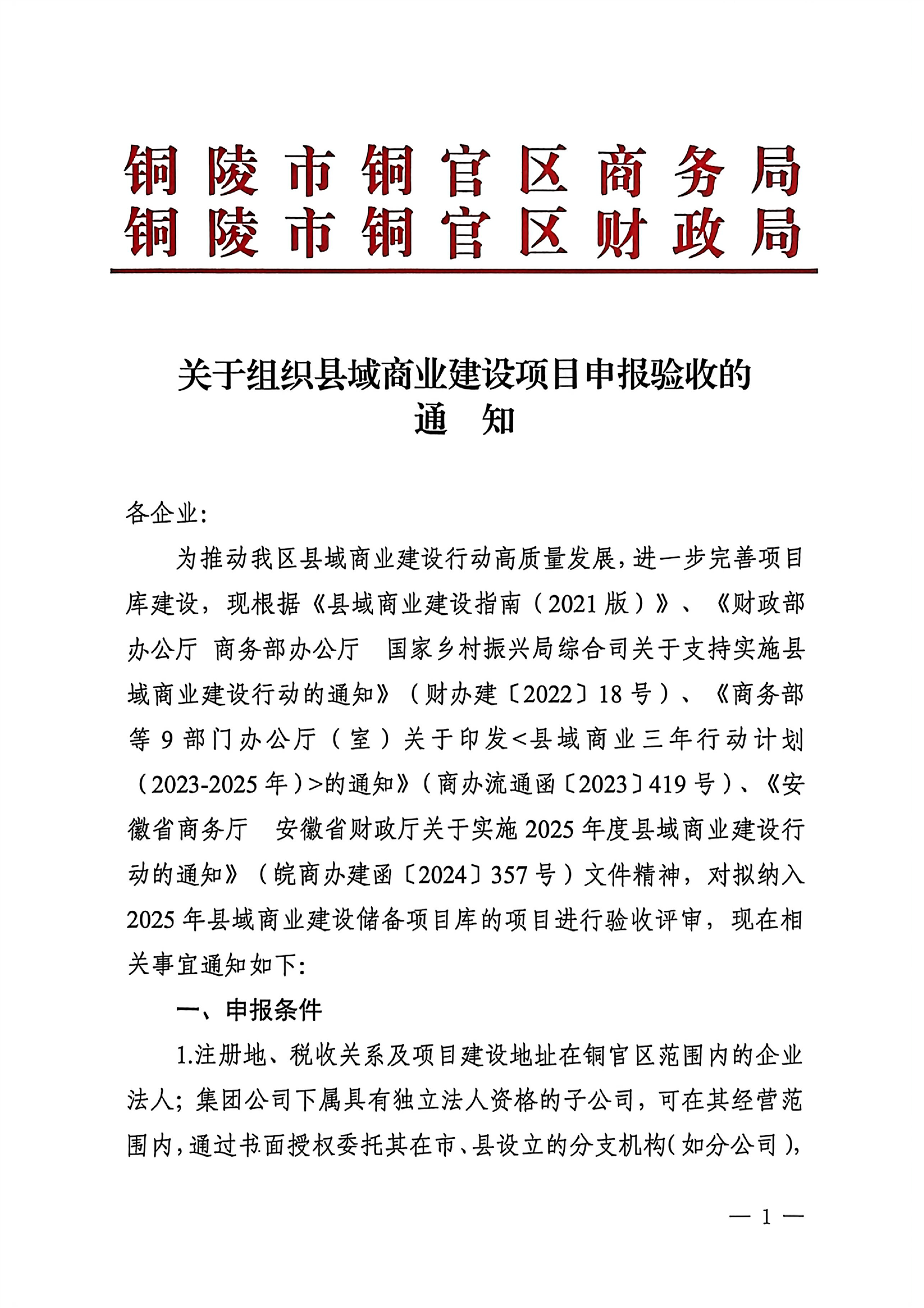 关于组织县域商业体系建设项目申报验收的通知-铜官区人民政府