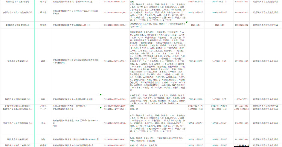 2025年第四季度危险化学品经营许可证发放情况-铜官区人民政府