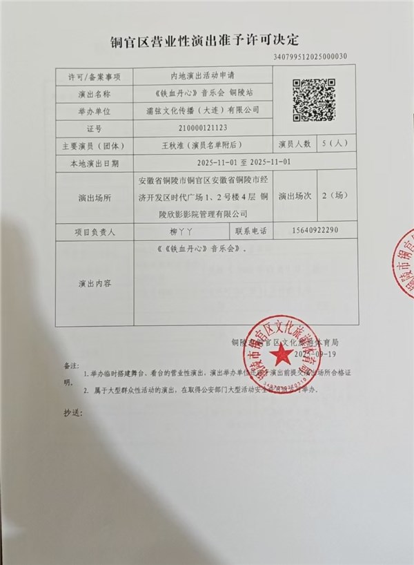 营业性演出——濡弦文化传播(大连)有限公司(王秋淮)-铜官区人民政府