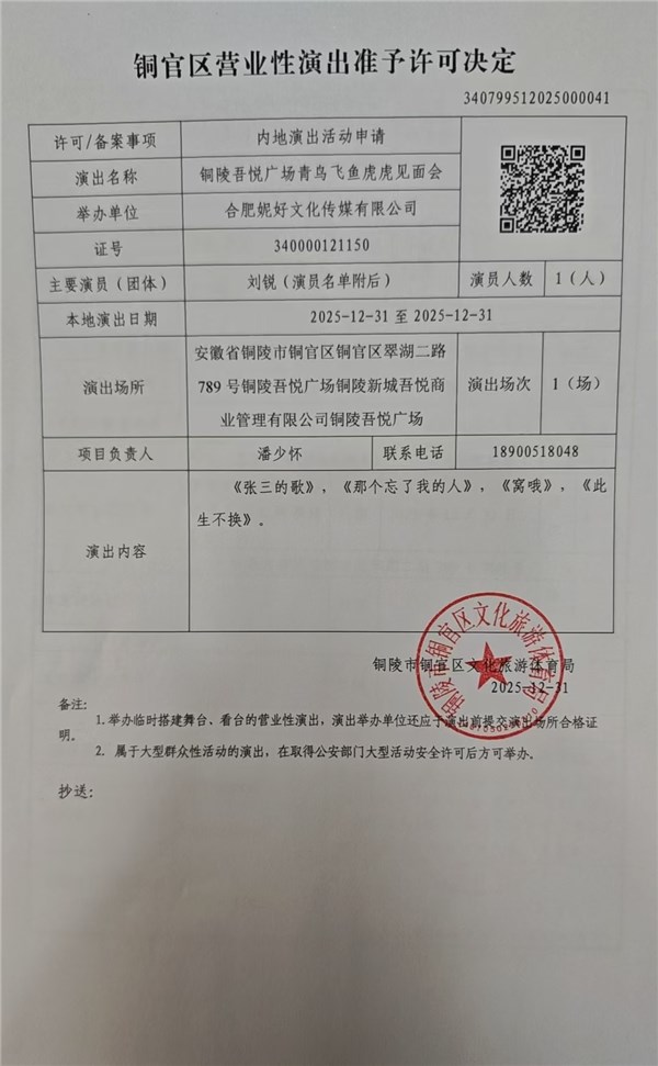 营业性演出——合肥妮好文化传播有限公司(刘锐)-铜官区人民政府