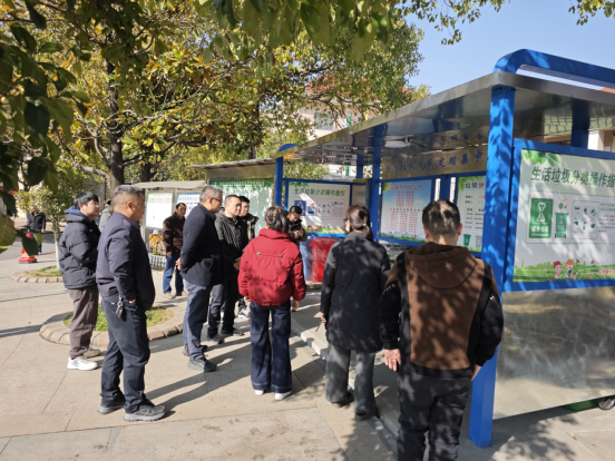 调研过程中,黄山市局领导仔细查看了秀水一期垃圾分类亭的硬件设施配置、分类容器标识、环境卫生状况以及日常维护管理情况。他们详细询问了该点位垃圾分类的日均产生量、居民自主投放准确率、不同类别垃圾的清运频率与流向,以及督导员配备与作用发挥等具体细节。社区垃圾分类专职人员结合日常管理和实际工作经验,一一进行了汇报,并介绍了社区在入户宣传、桶边指导、志愿者巡查、积分激励等方面引导居民参与分类的系列举措。