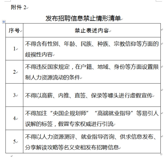 名称: 发布招聘信息禁止情形清单 文号: