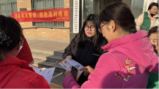 2026年1月13日上午,东郊办事处开源社区开展了主题为“远离非法集资 拒绝高利诱惑”的金融安全宣传活动。本次活动吸引了辖区内二十余名中老年居民积极参与。