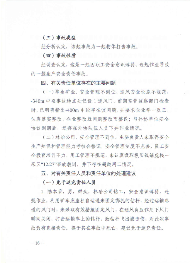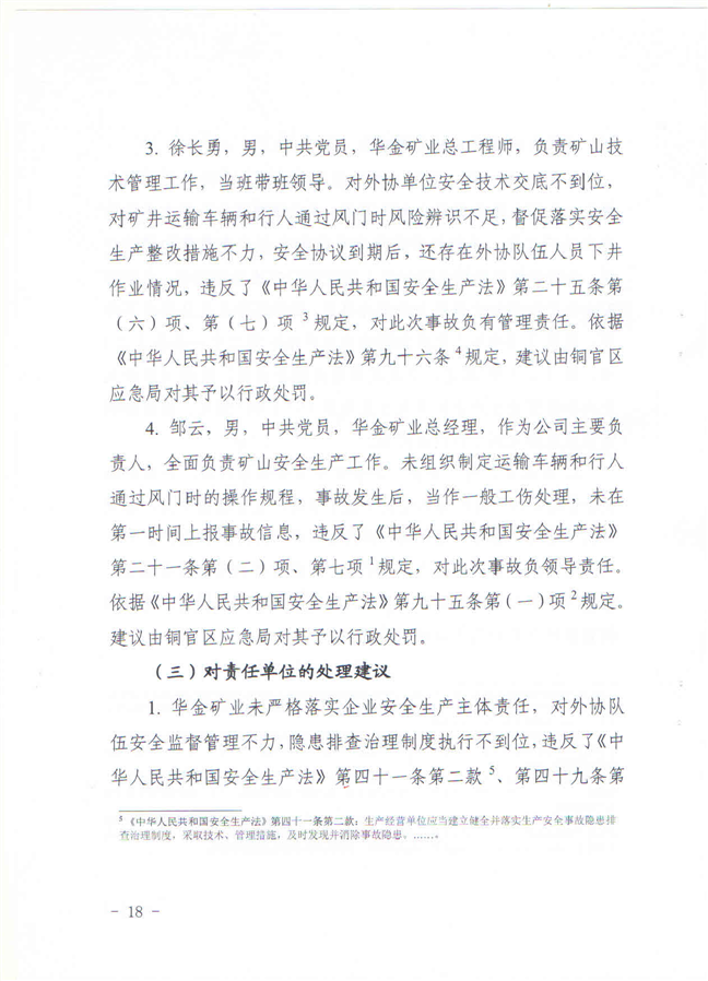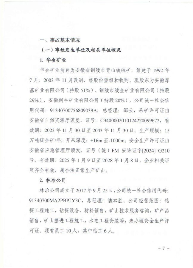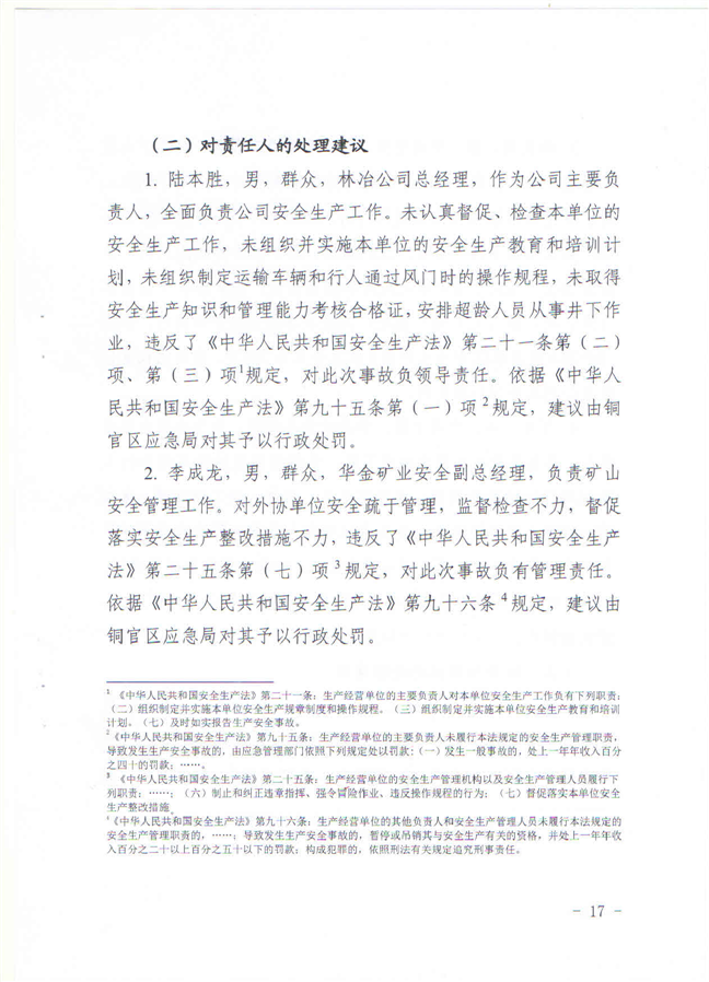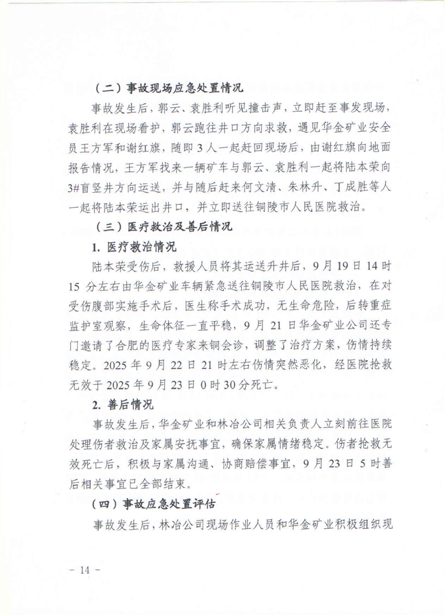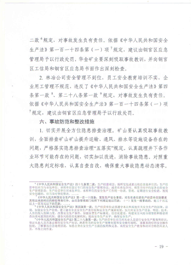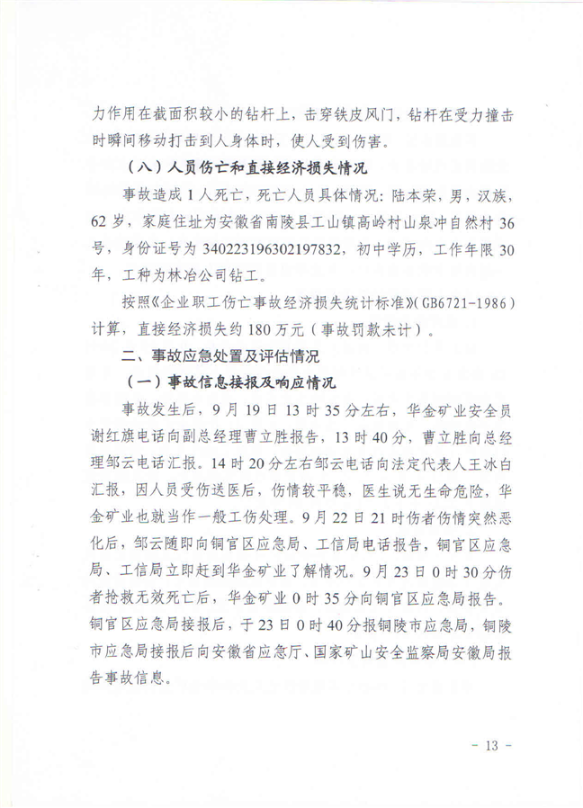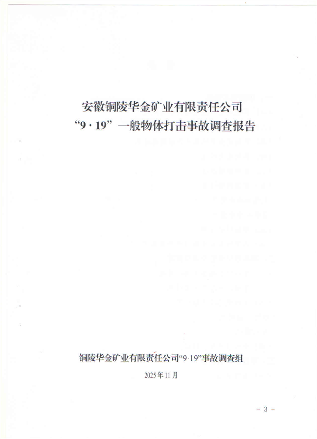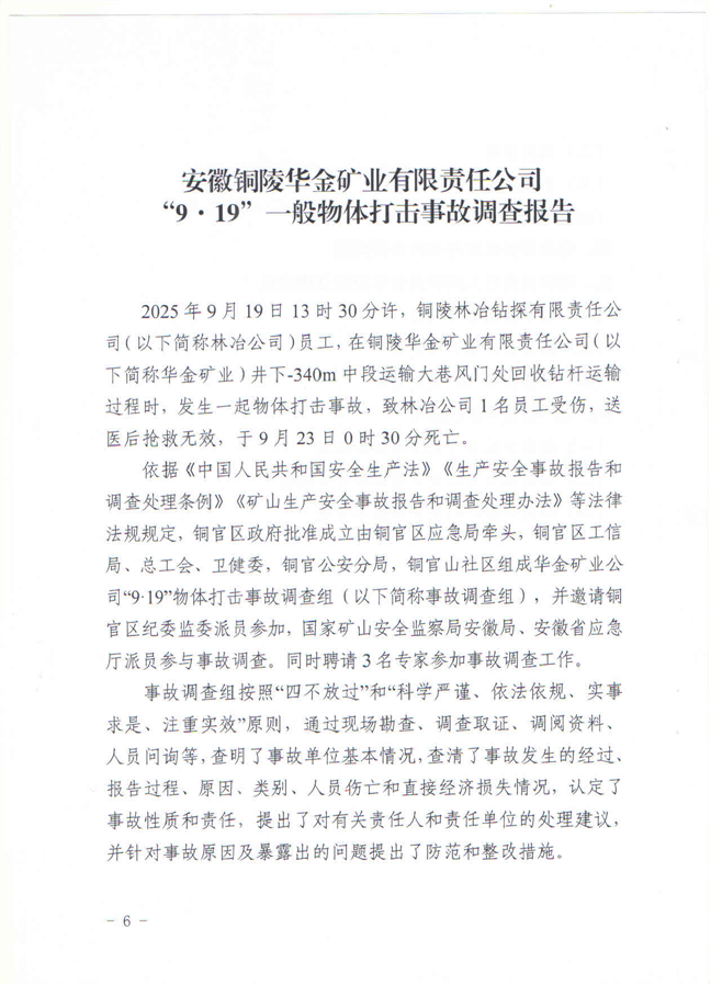 安徽铜陵华金矿业有限责任公司“9·19”一般物体打击事故调查报告-铜官区人民政府
