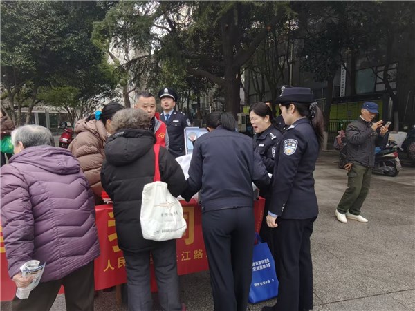 为进一步加大防电信诈骗力度,提升人民群众对电信诈骗的防范意识,减少小区居民财产损失。近日,人民社区联合长江路派出所在辖区开展反电信诈骗宣传活动。