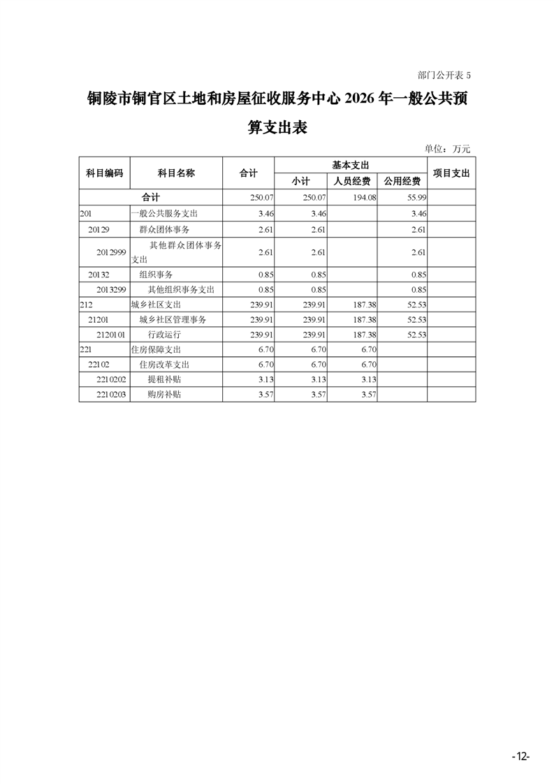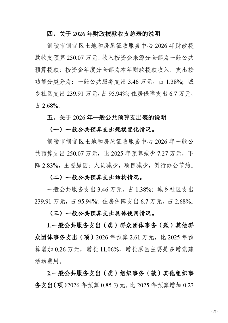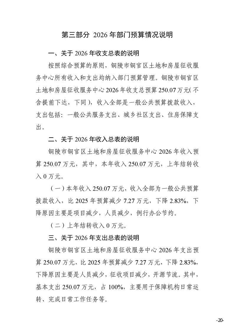 铜陵市铜官区土地和房屋征收服务中心2026年部门预算-铜官区人民政府