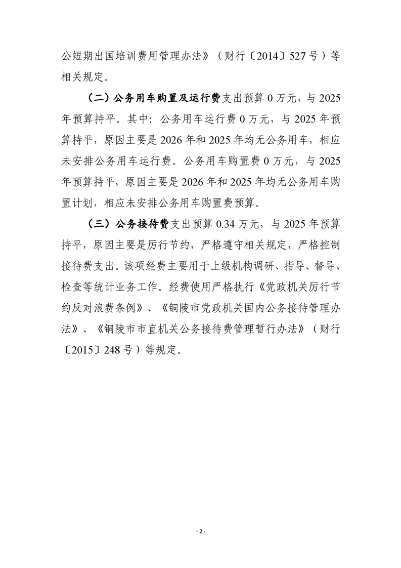 铜陵市铜官区统计局 2026 年一般公共预算“三公”经费预算