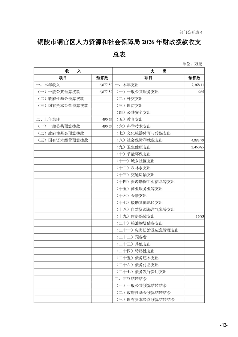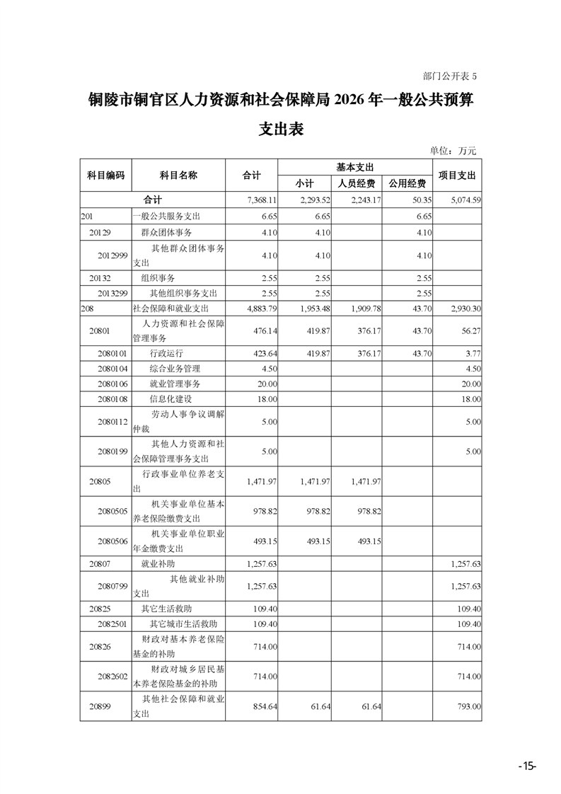 铜官区人力资源和社会保障局2026年部门预算公开-铜官区人民政府