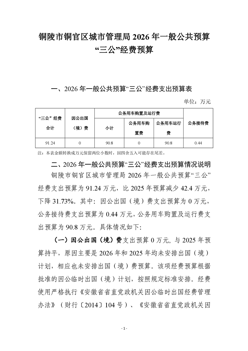 铜陵市铜官区城市管理局2026年度一般公共预算“三公”经费预算-铜官区人民政府