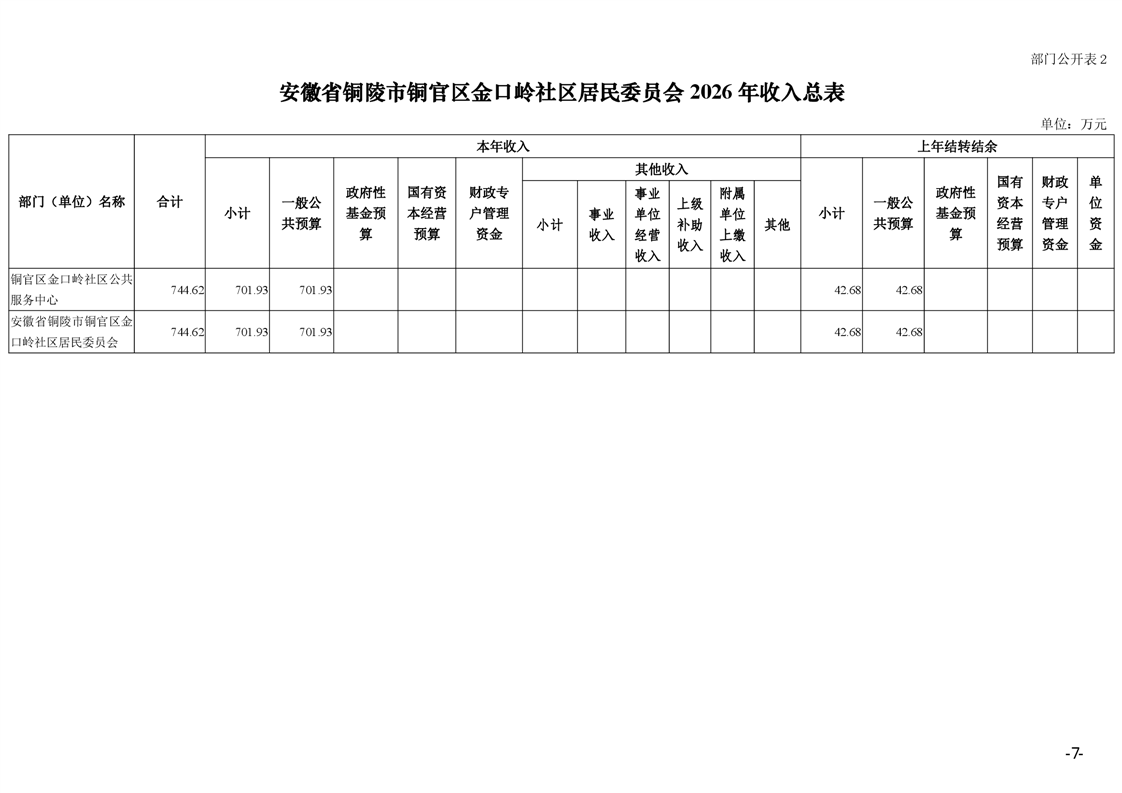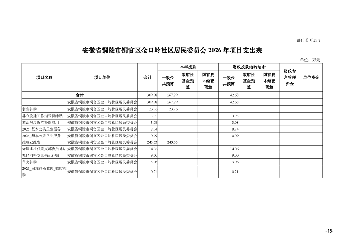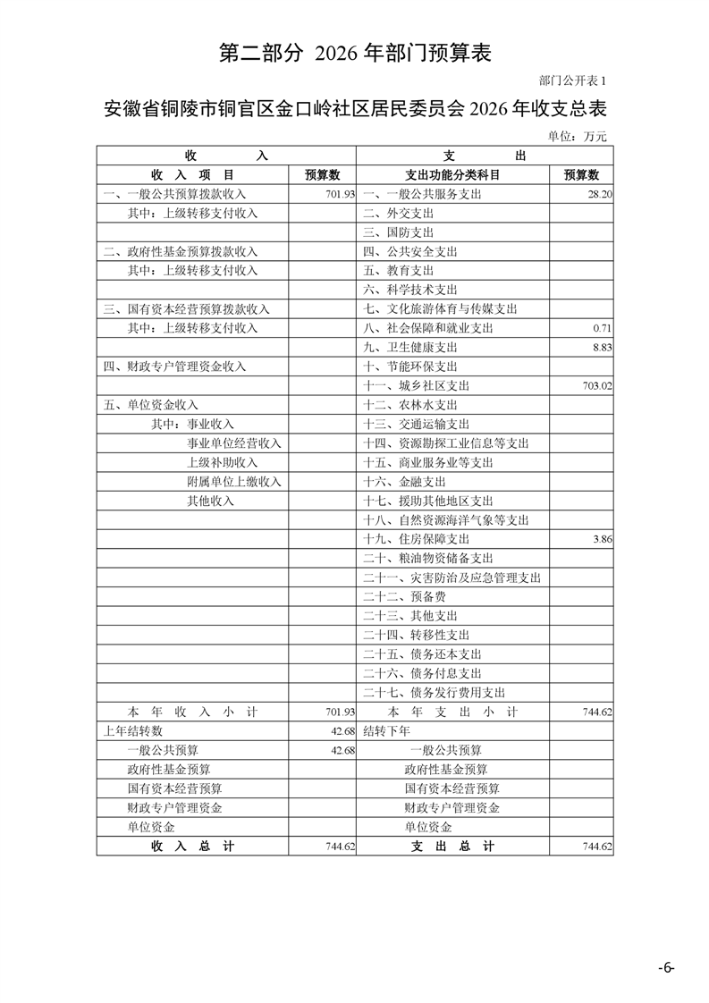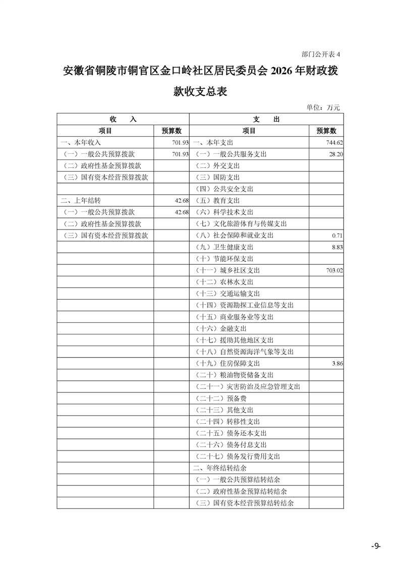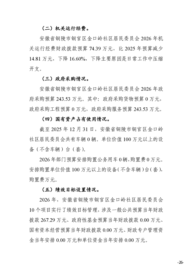 铜官区金口岭社区2026年部门预算-铜官区人民政府