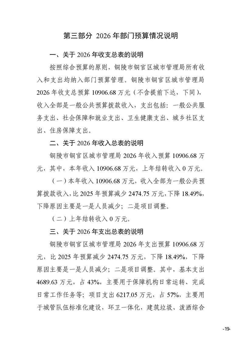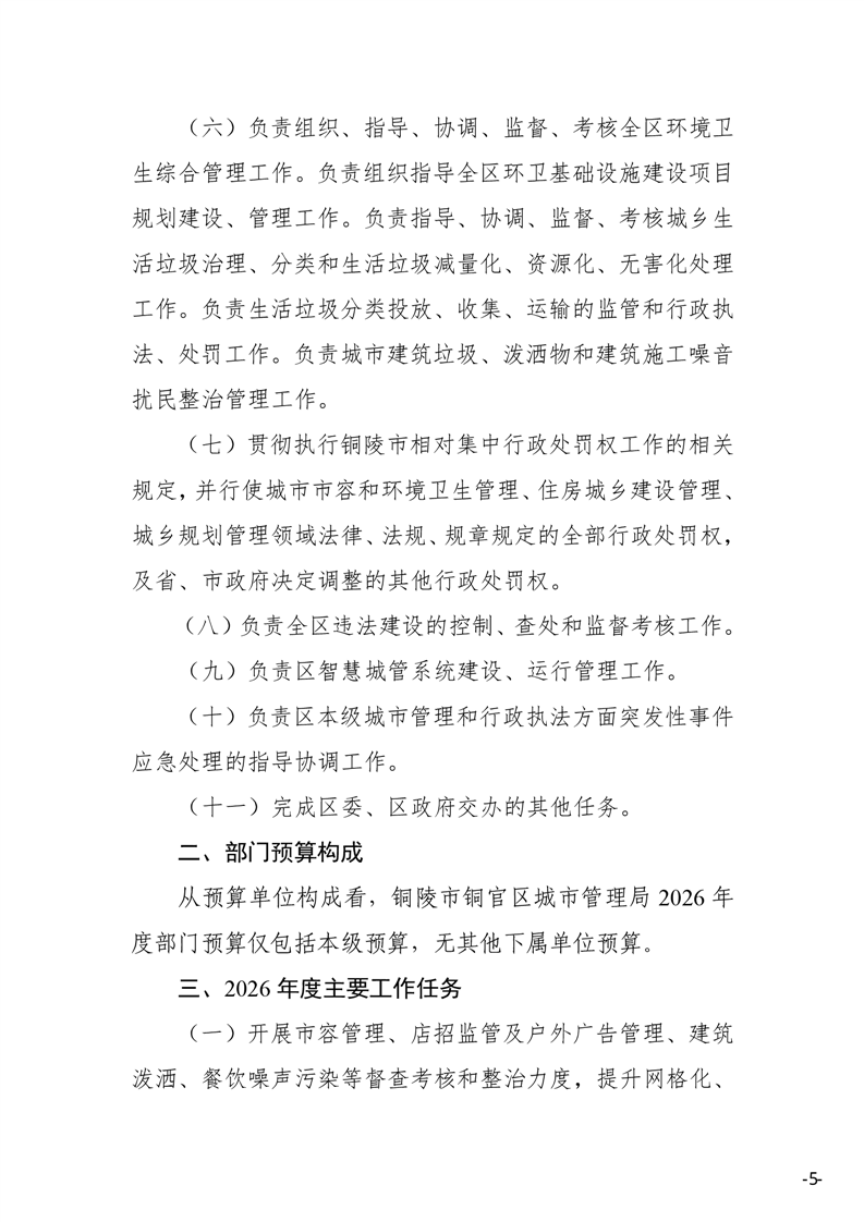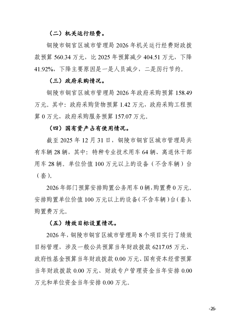 铜陵市铜官区城市管理局2026年度部门预算公开-铜官区人民政府