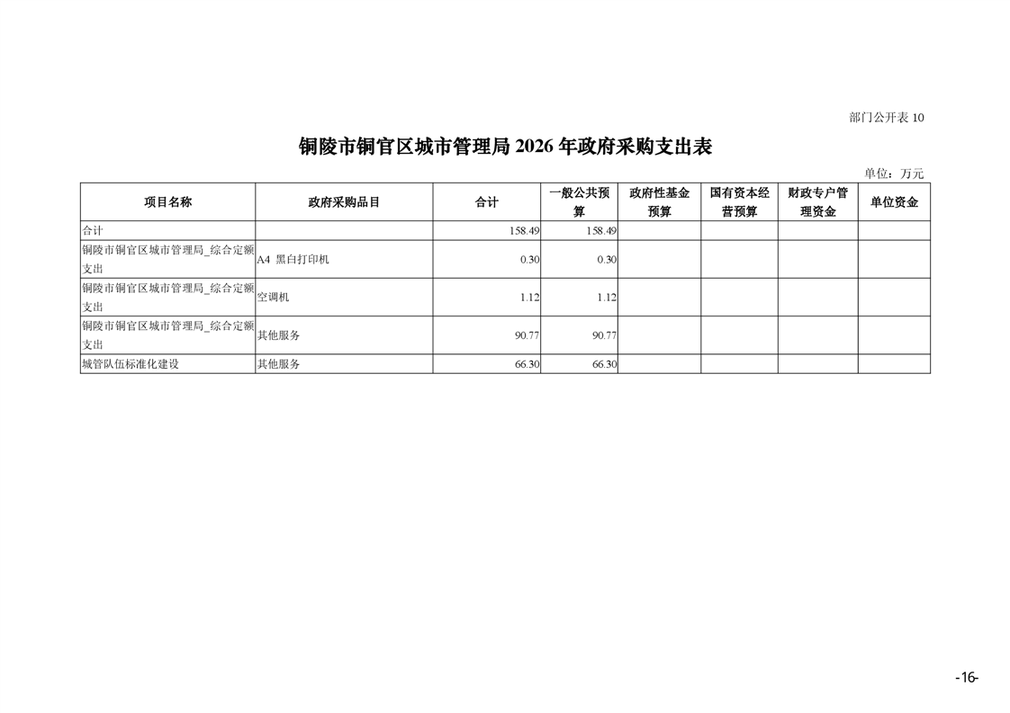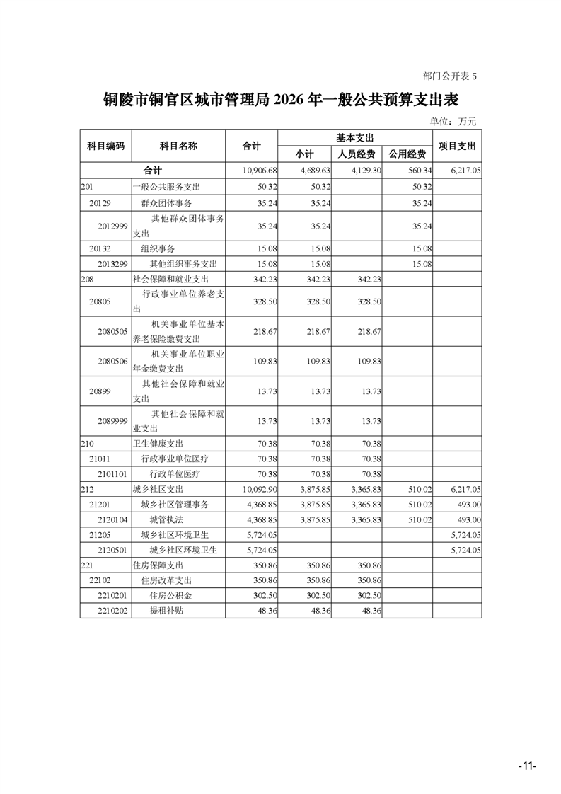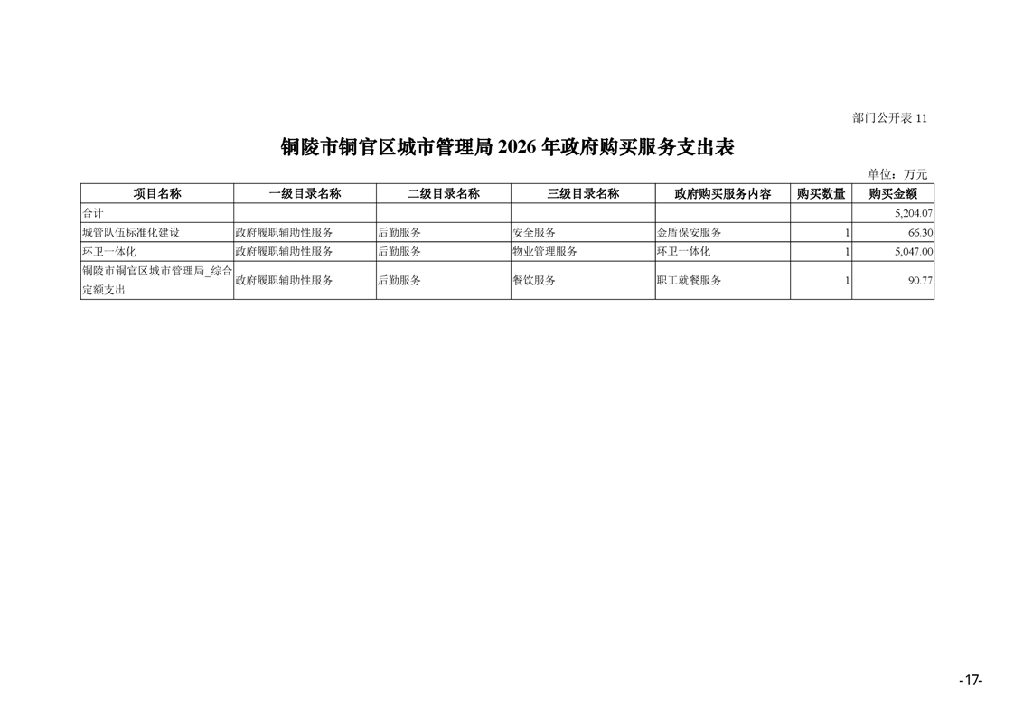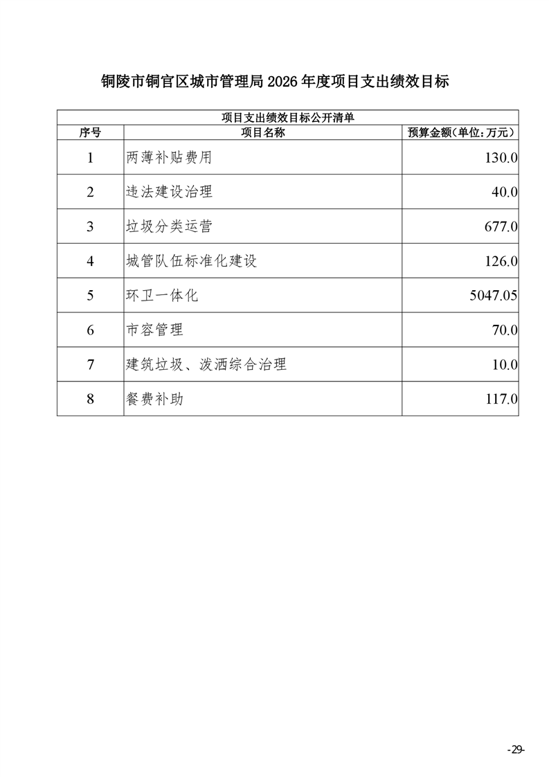 铜陵市铜官区城市管理局2026年度部门预算公开-铜官区人民政府