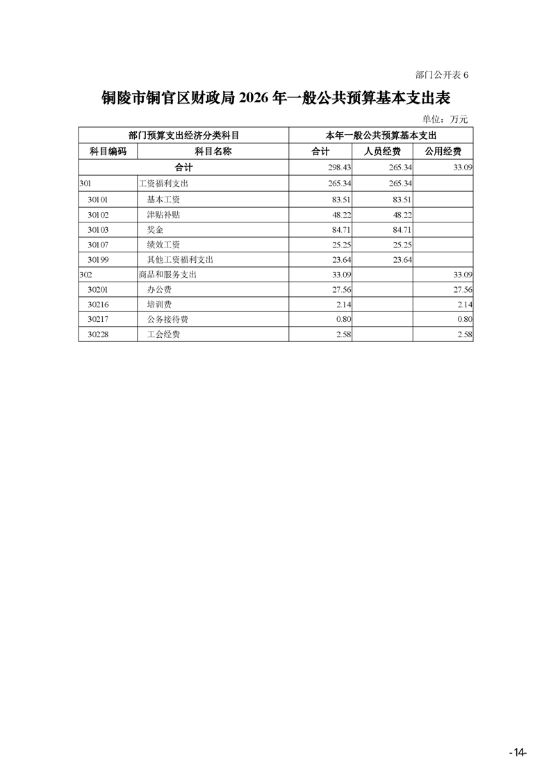 铜官区财政局2026年部门预算
