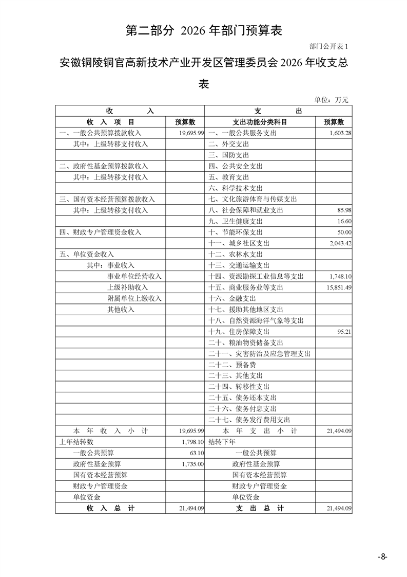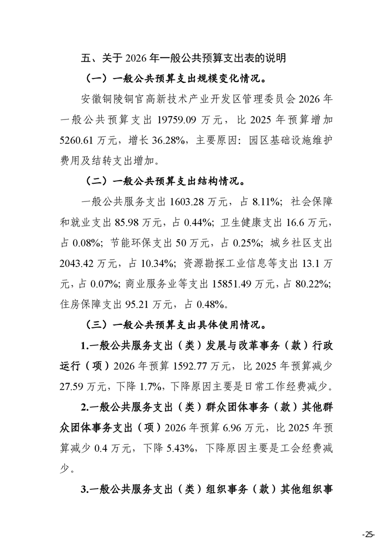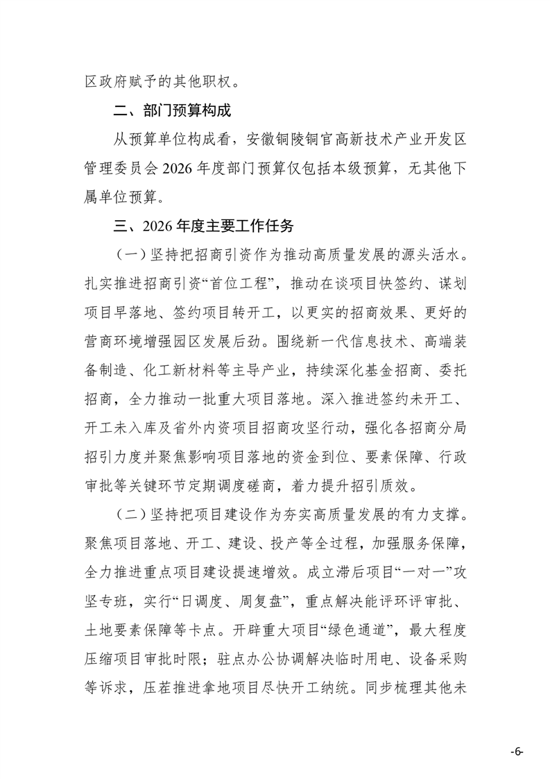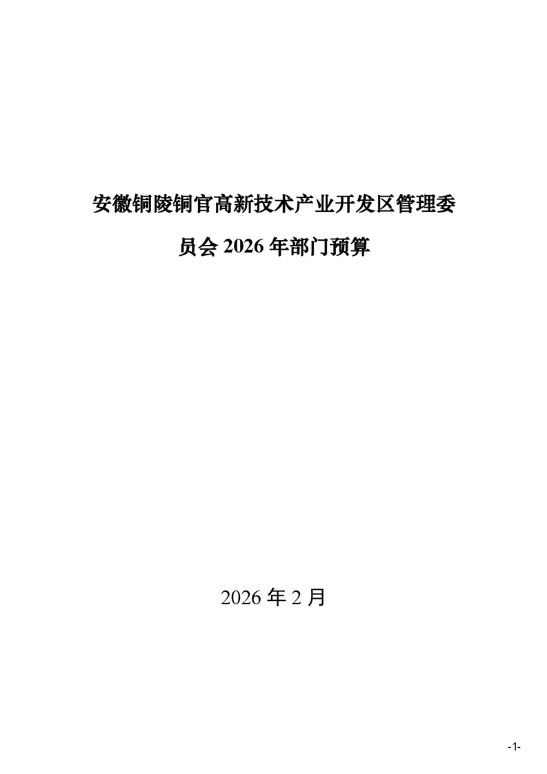 安徽铜陵铜官高新技术产业开发区管理委员会2026年部门预算-铜官区人民政府
