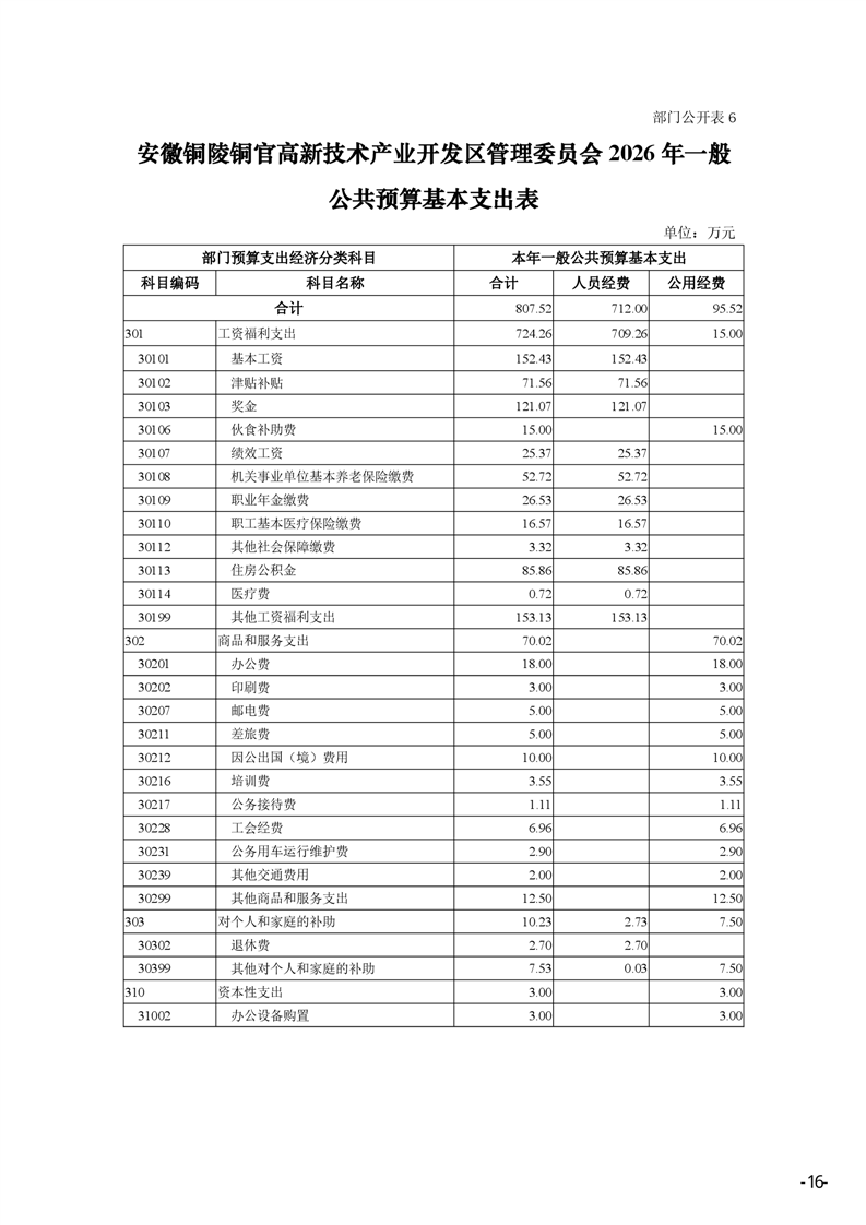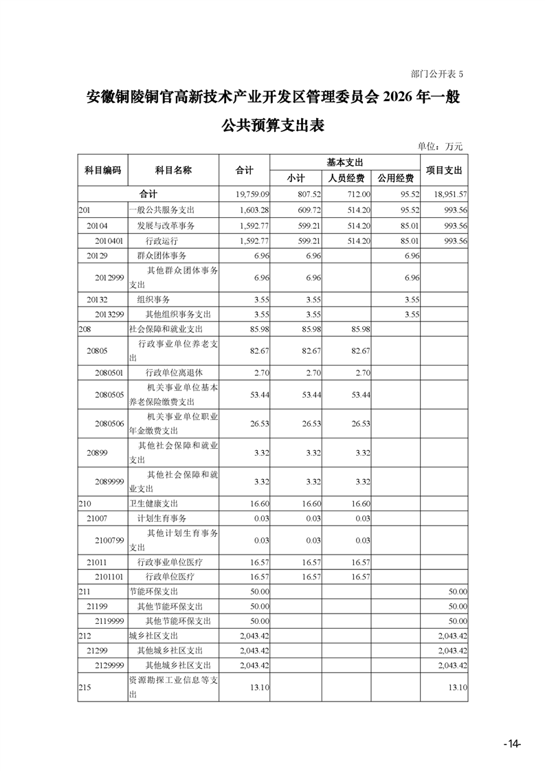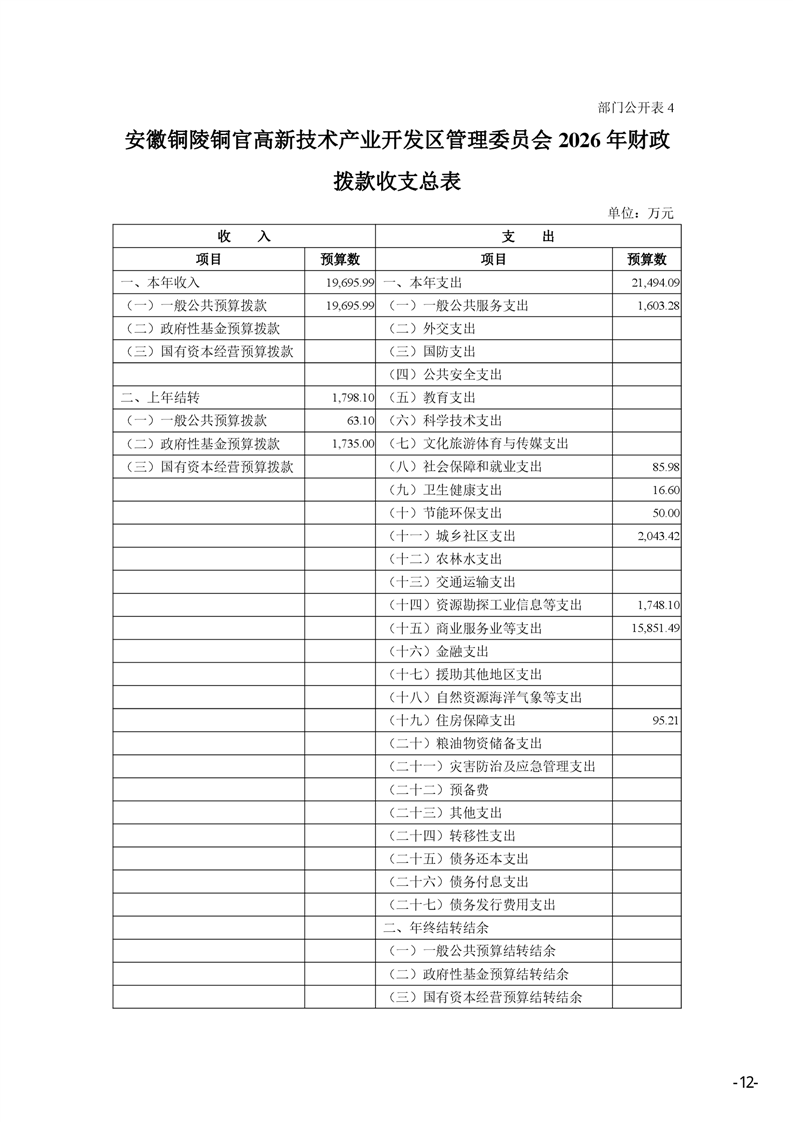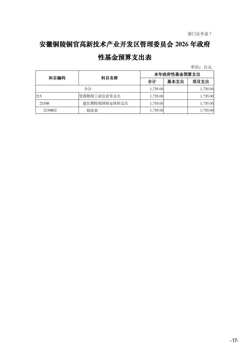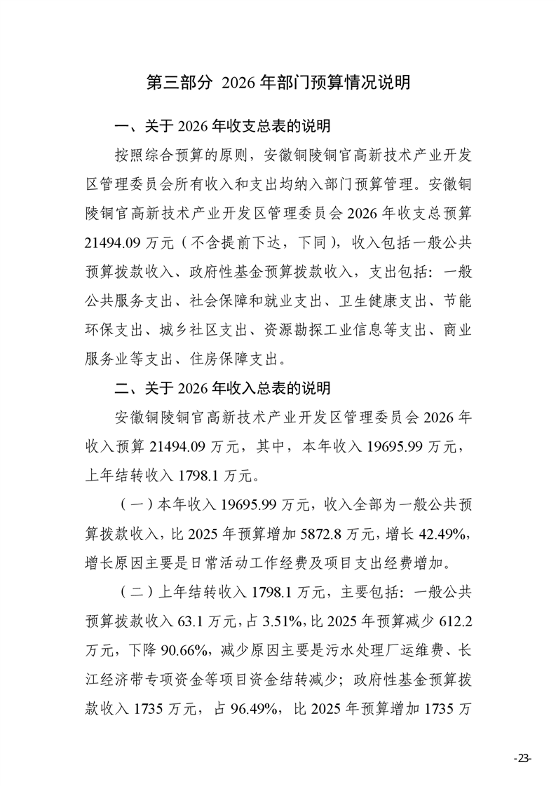 安徽铜陵铜官高新技术产业开发区管理委员会2026年部门预算-铜官区人民政府