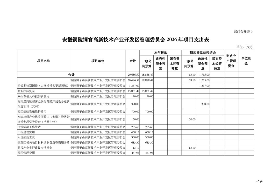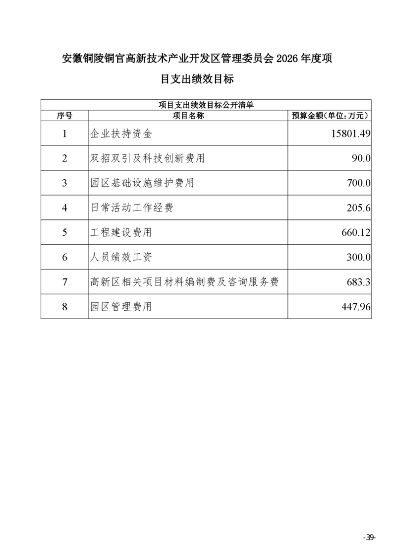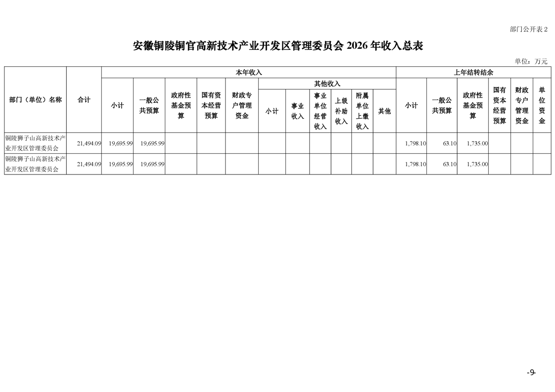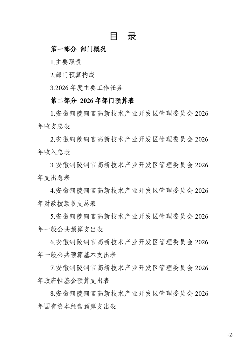 安徽铜陵铜官高新技术产业开发区管理委员会2026年部门预算