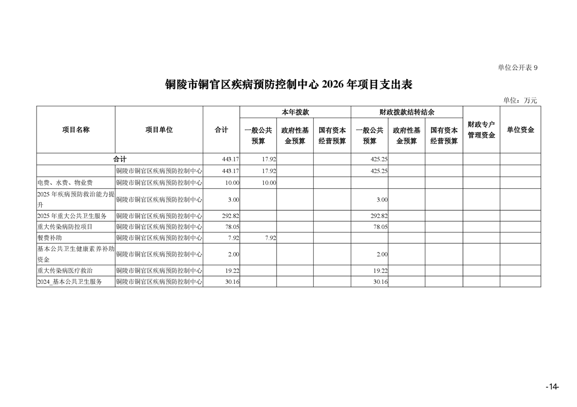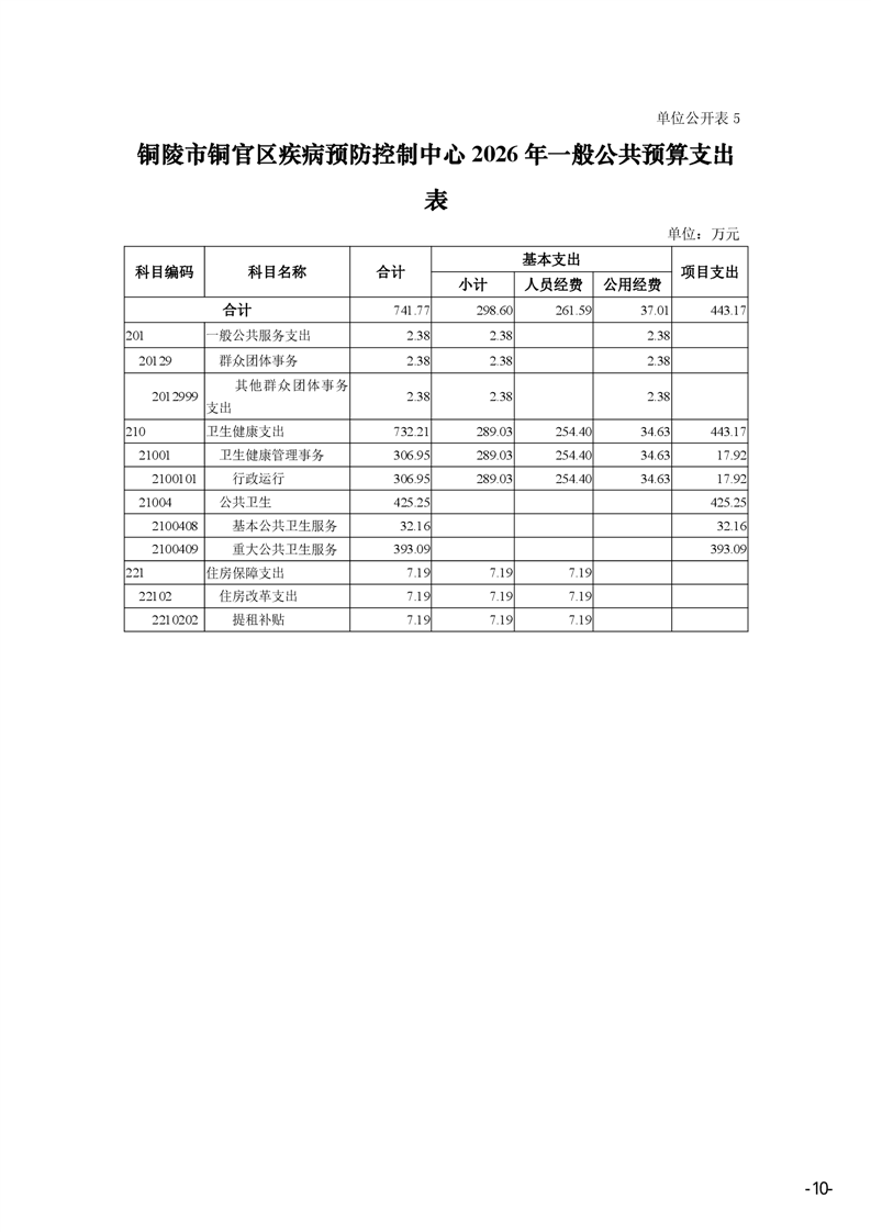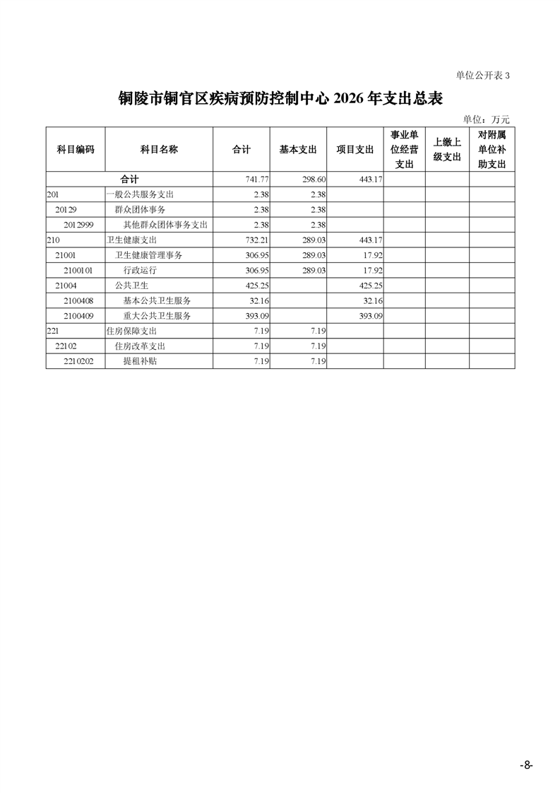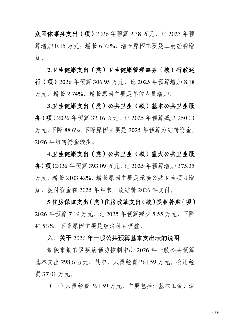 铜陵市铜官区疾病预防控制中心2026年单位预算-铜官区人民政府