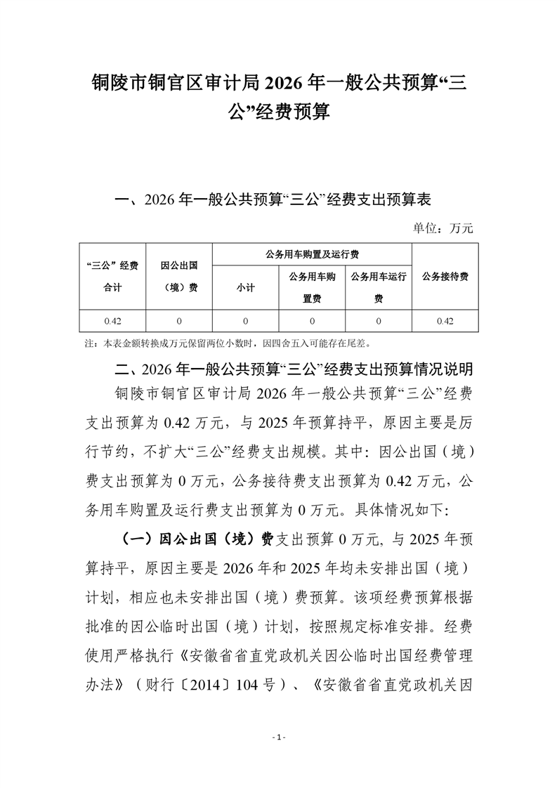 铜官区审计局 2026 年一般公共预算“三公”经费预算-铜官区人民政府