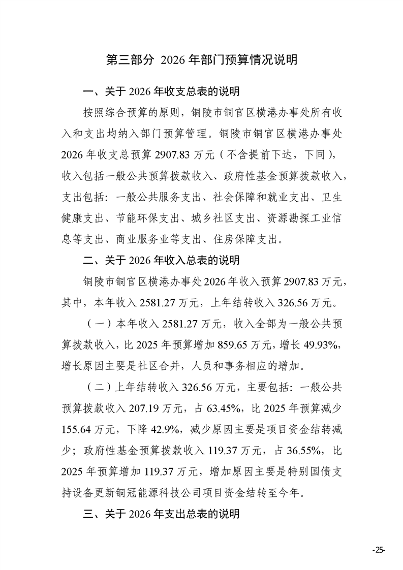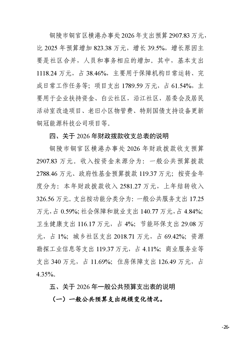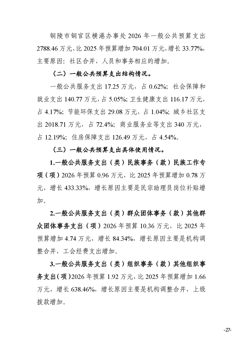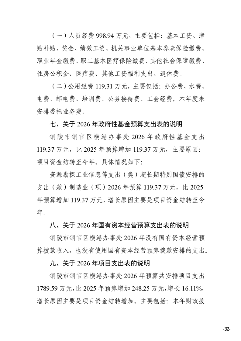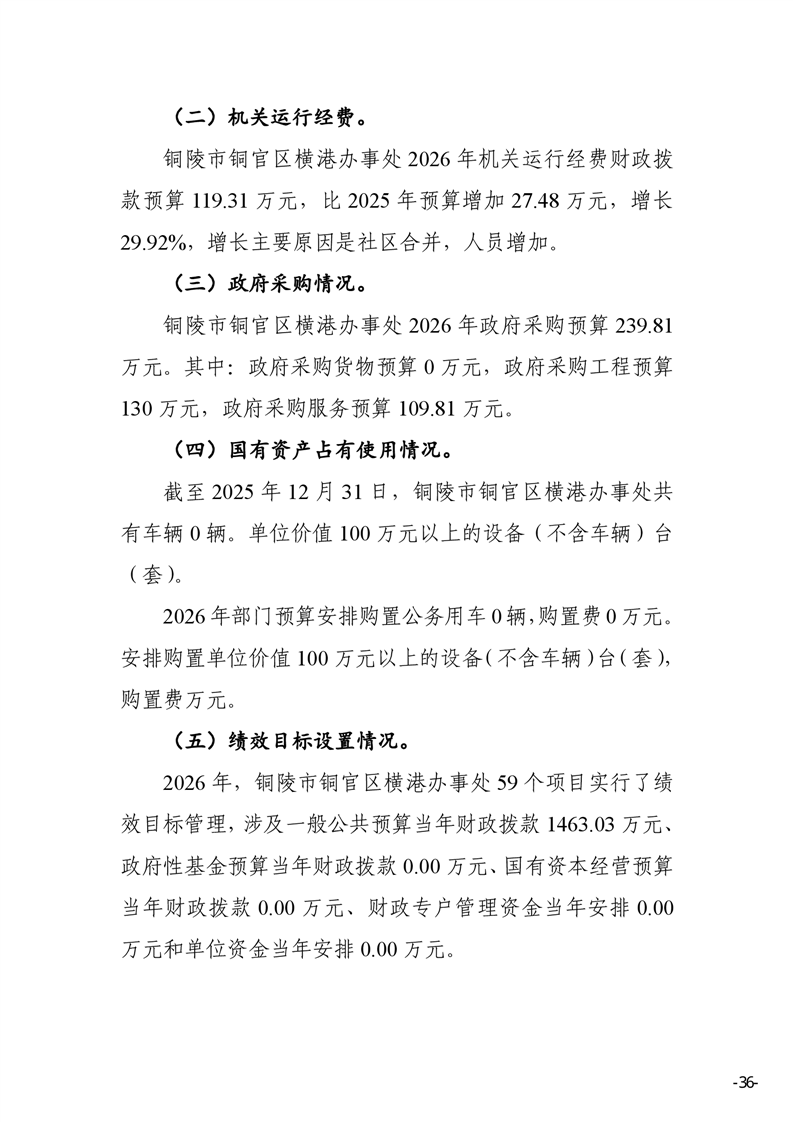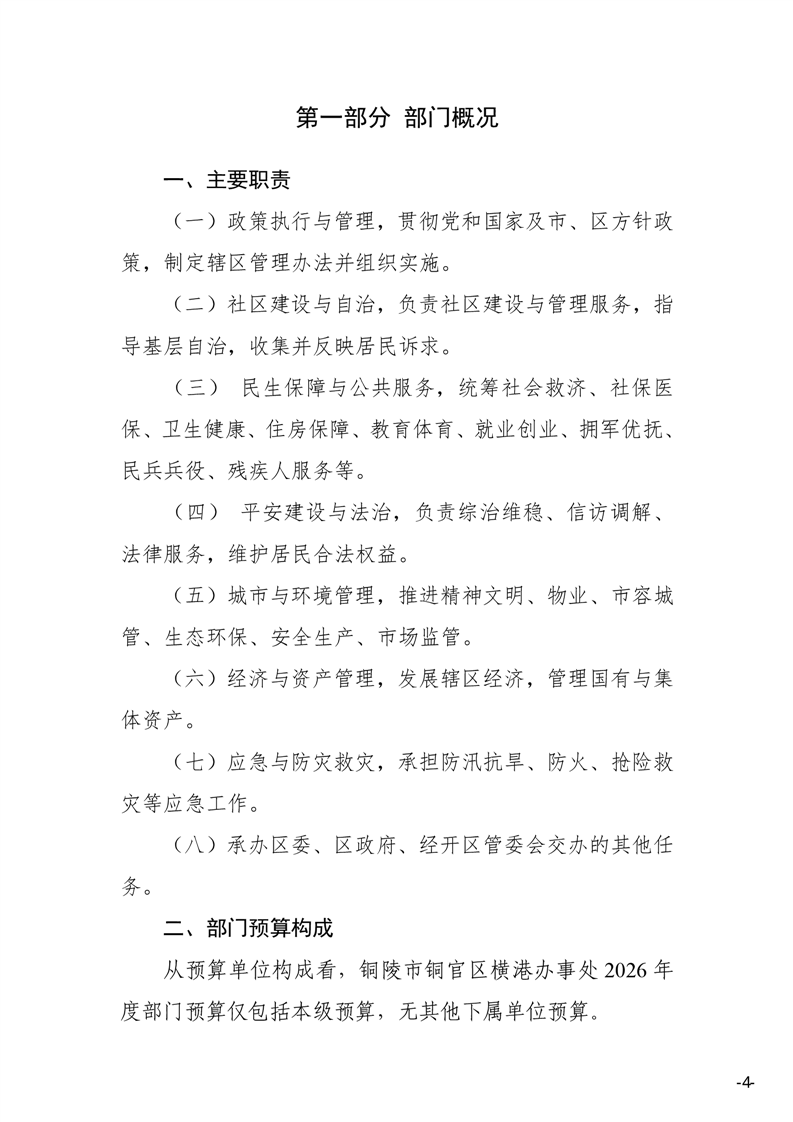 铜陵市铜官区横港办事处 2026 年部门预算-铜官区人民政府