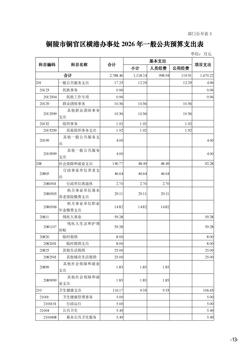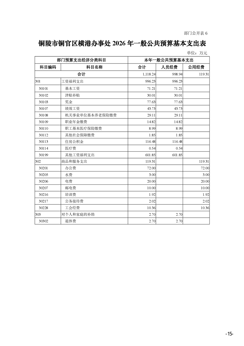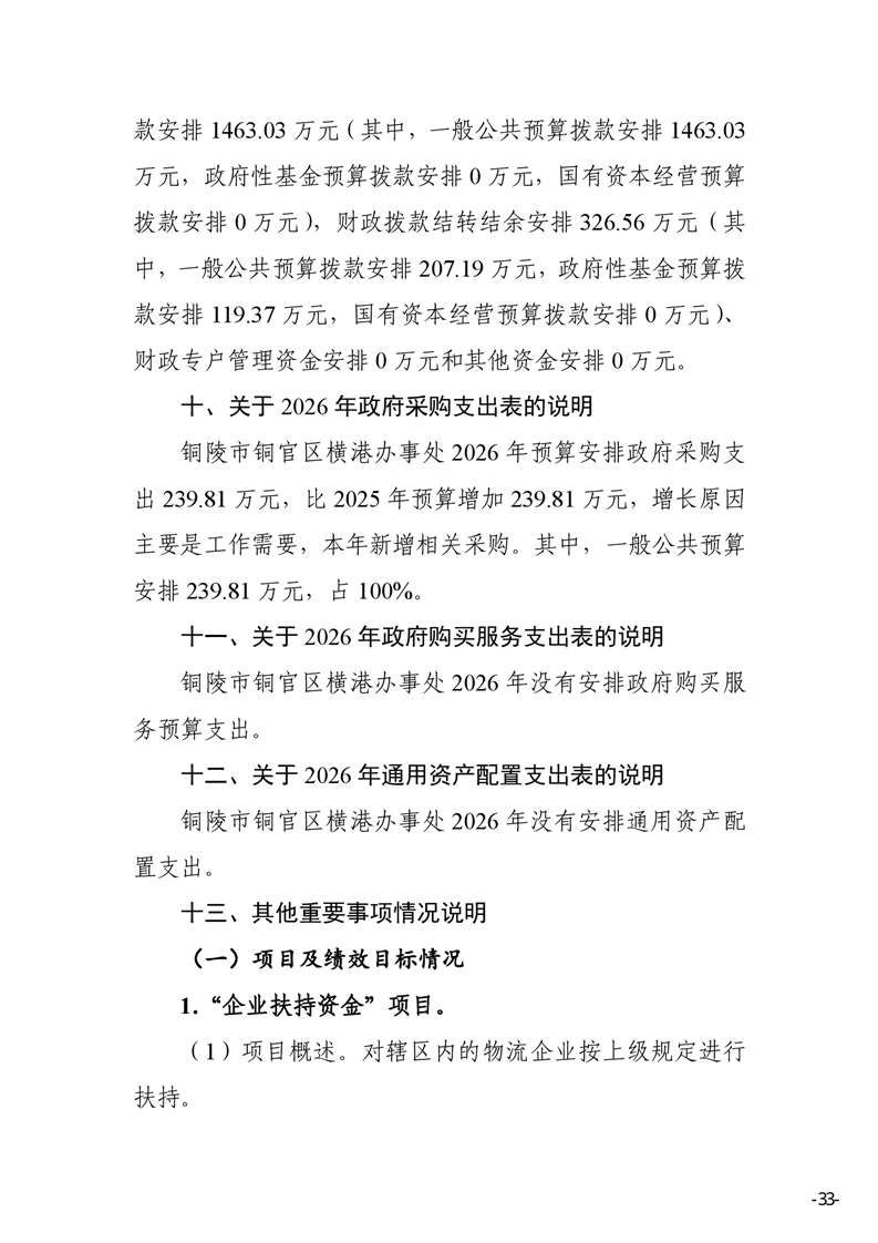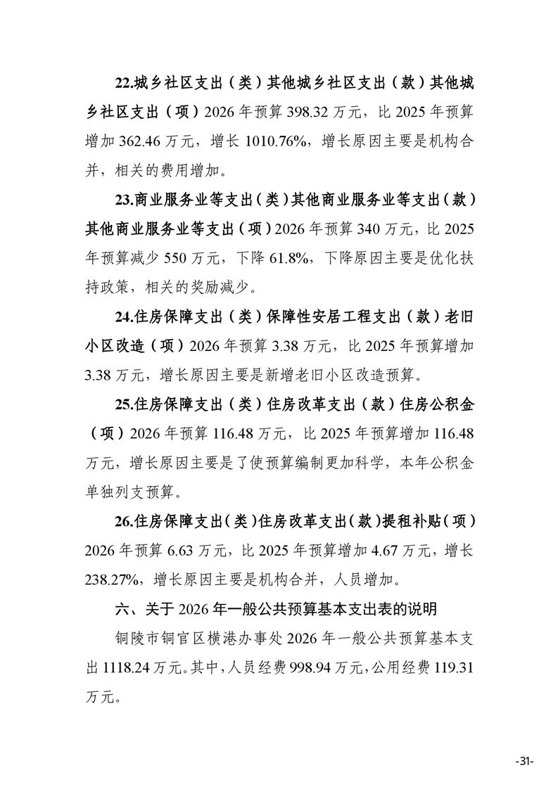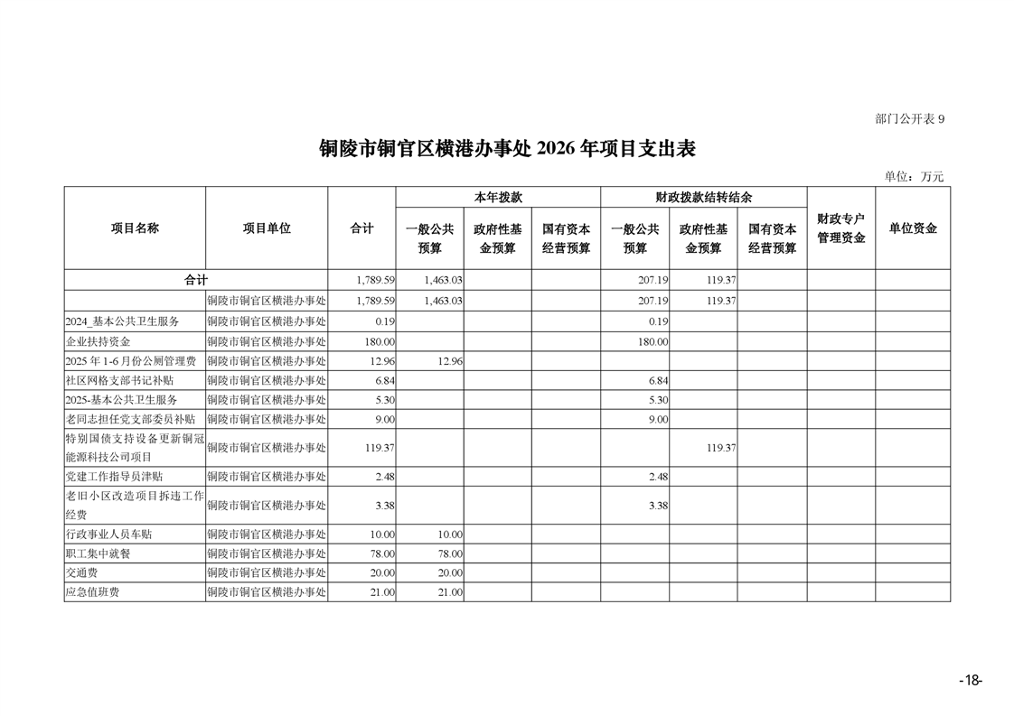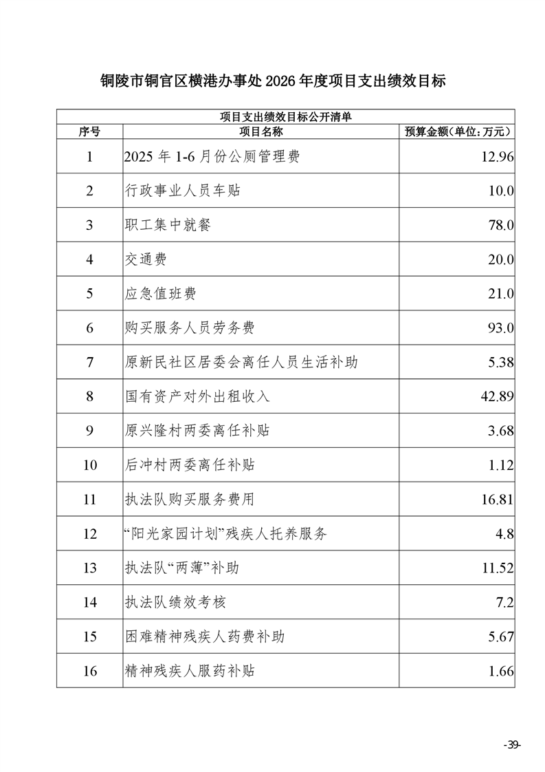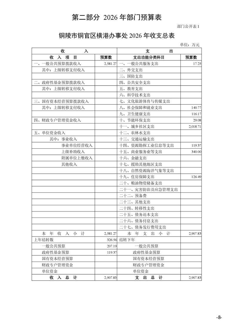 铜陵市铜官区横港办事处 2026 年部门预算-铜官区人民政府