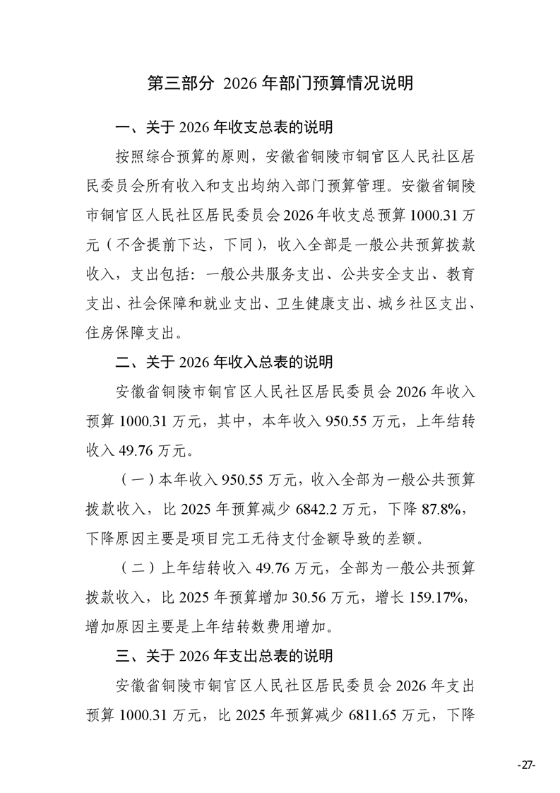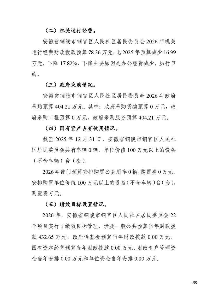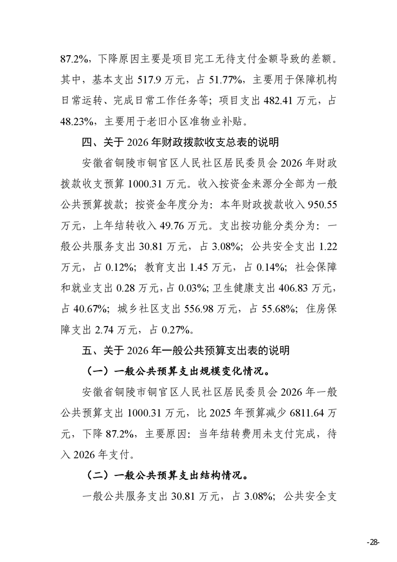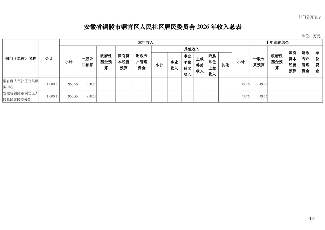 安徽省铜陵市铜官区人民社区2026年部门预算