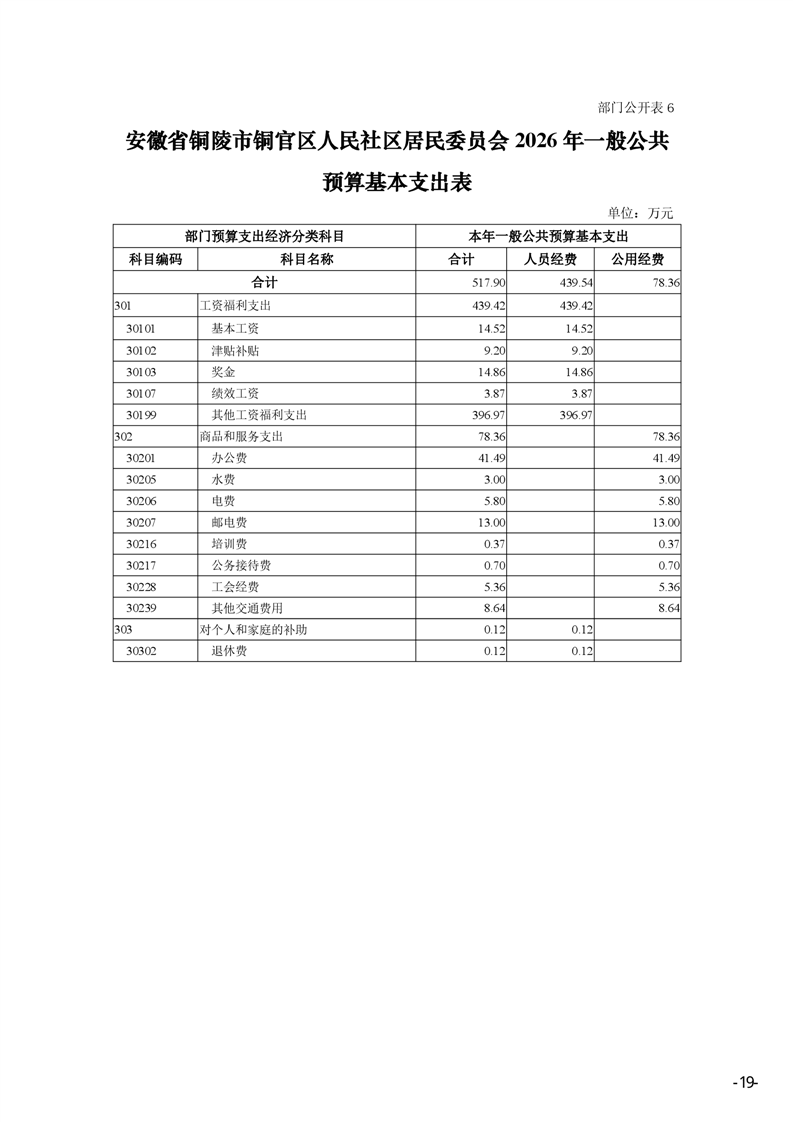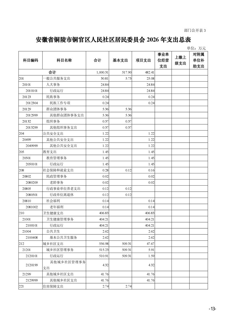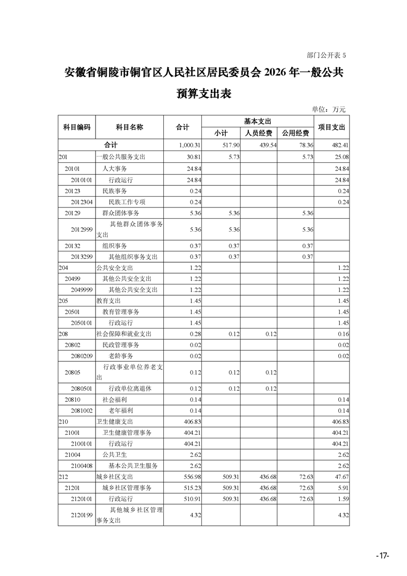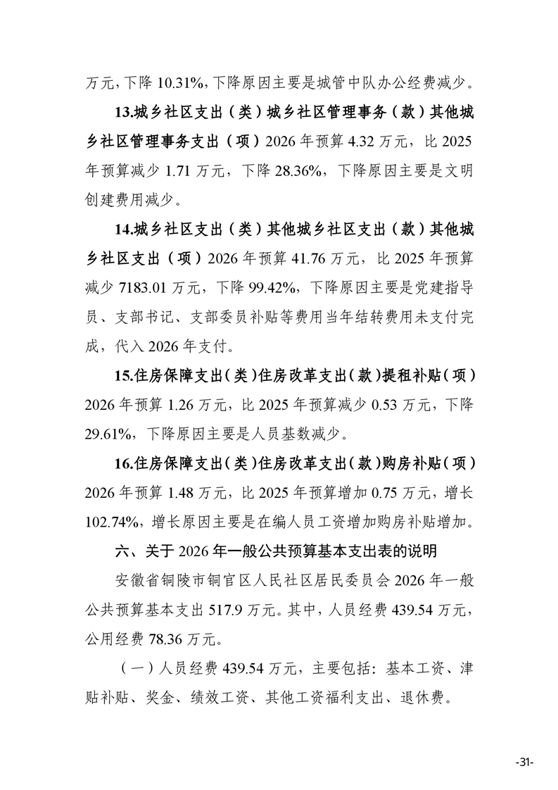 安徽省铜陵市铜官区人民社区2026年部门预算