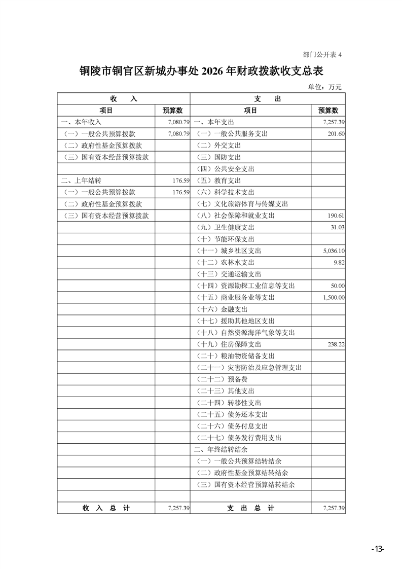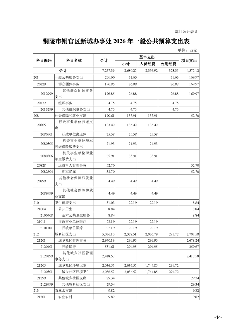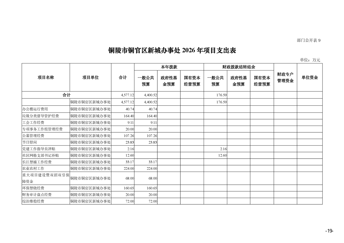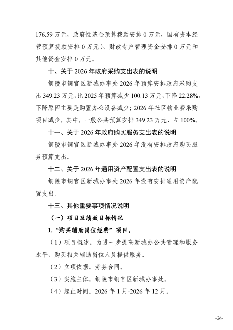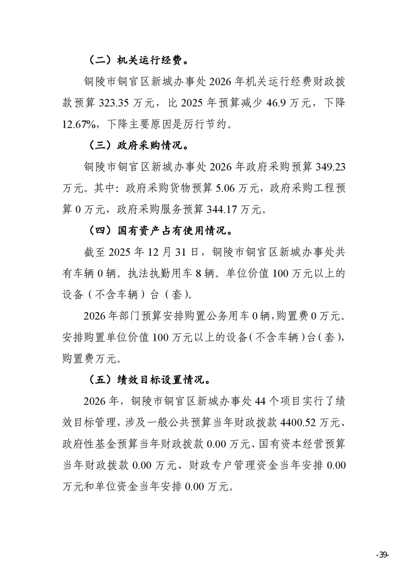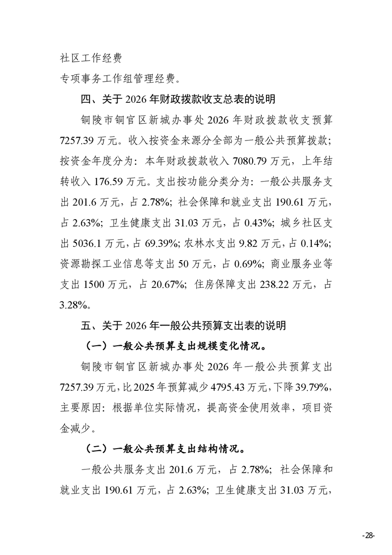 铜陵市铜官区新城办事处2026年部门预算-铜官区人民政府
