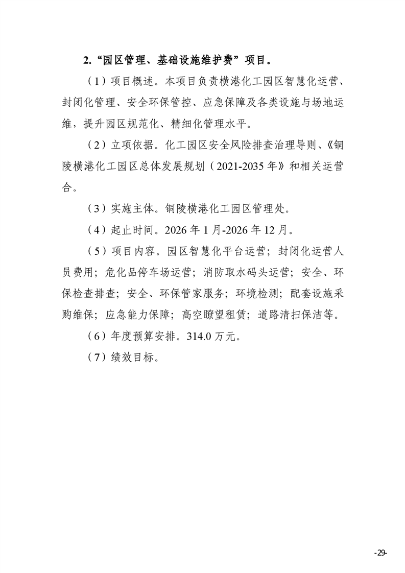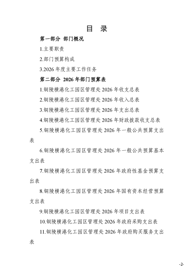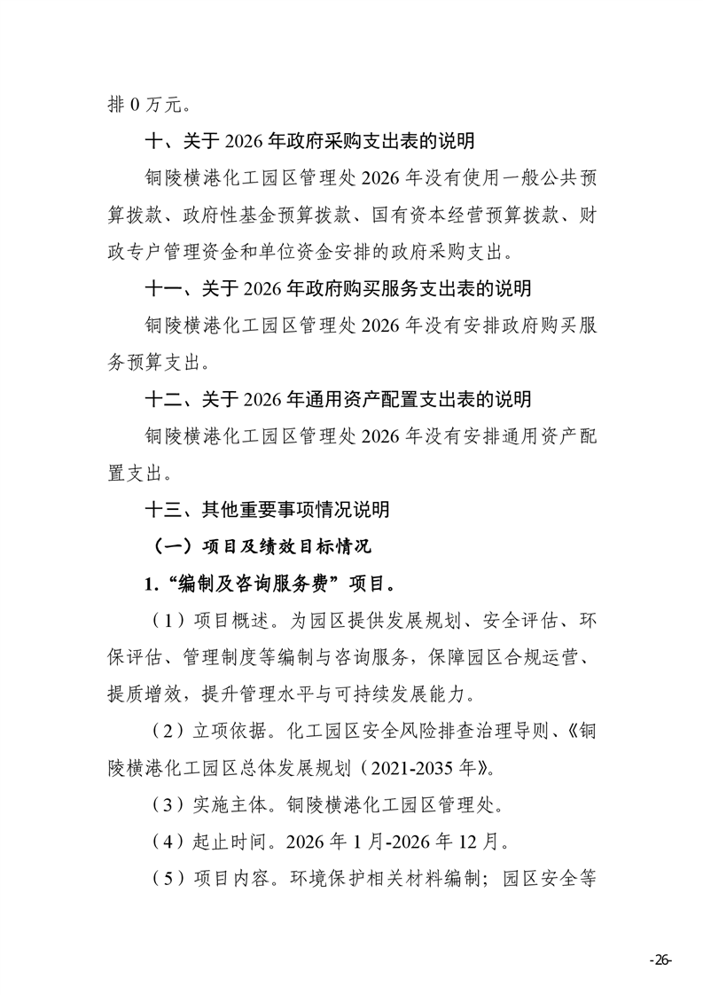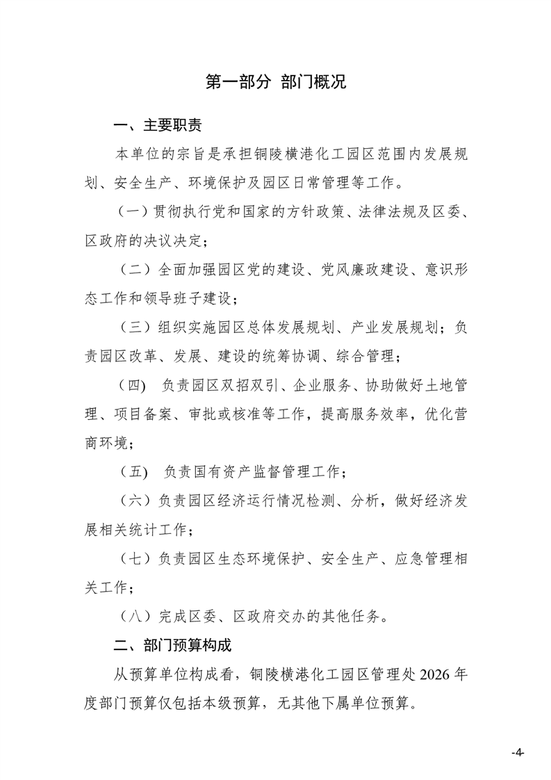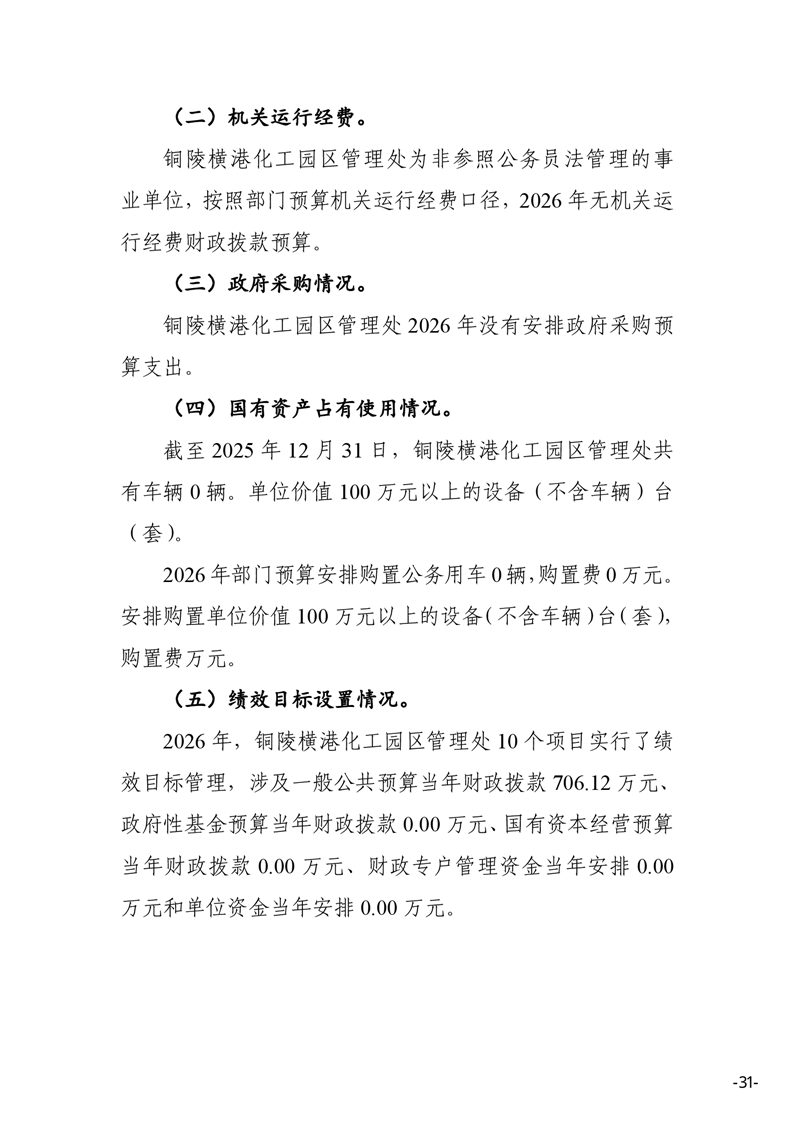 铜陵横港化工园区管理处2026年部门预算-铜官区人民政府