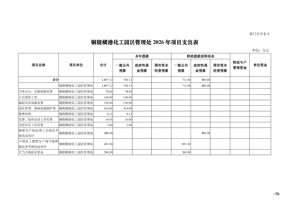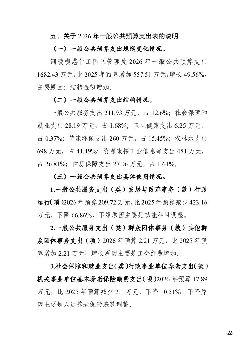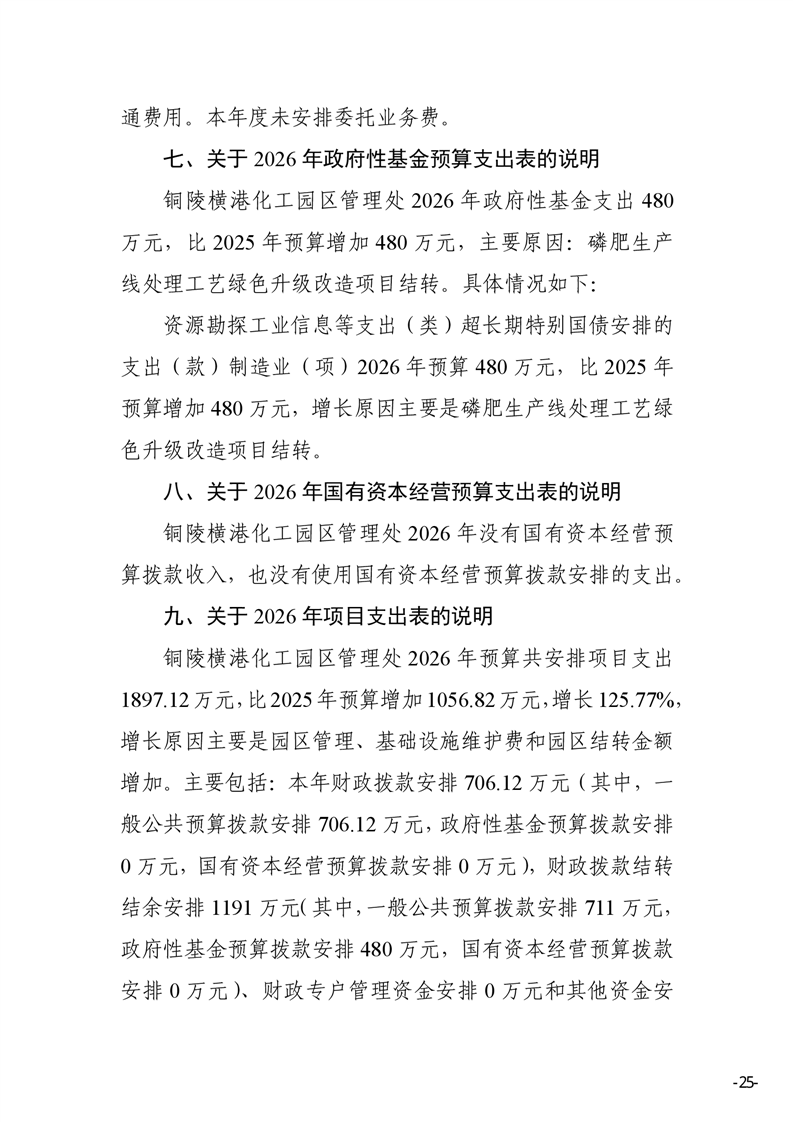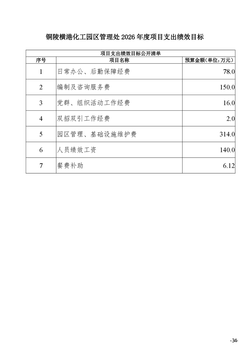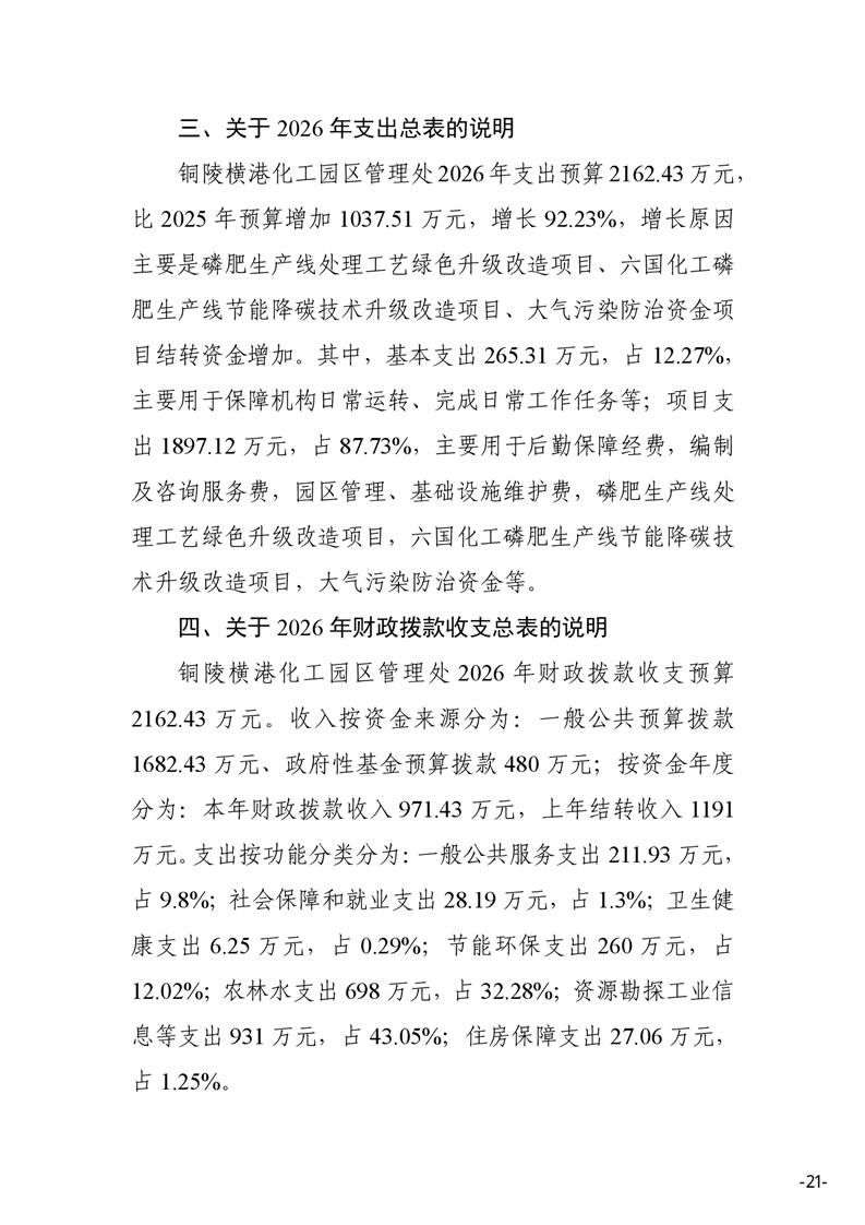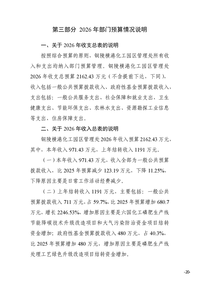 铜陵横港化工园区管理处2026年部门预算-铜官区人民政府