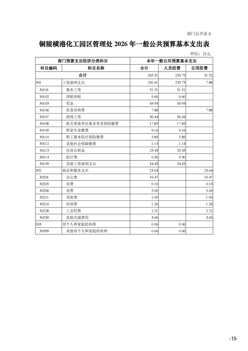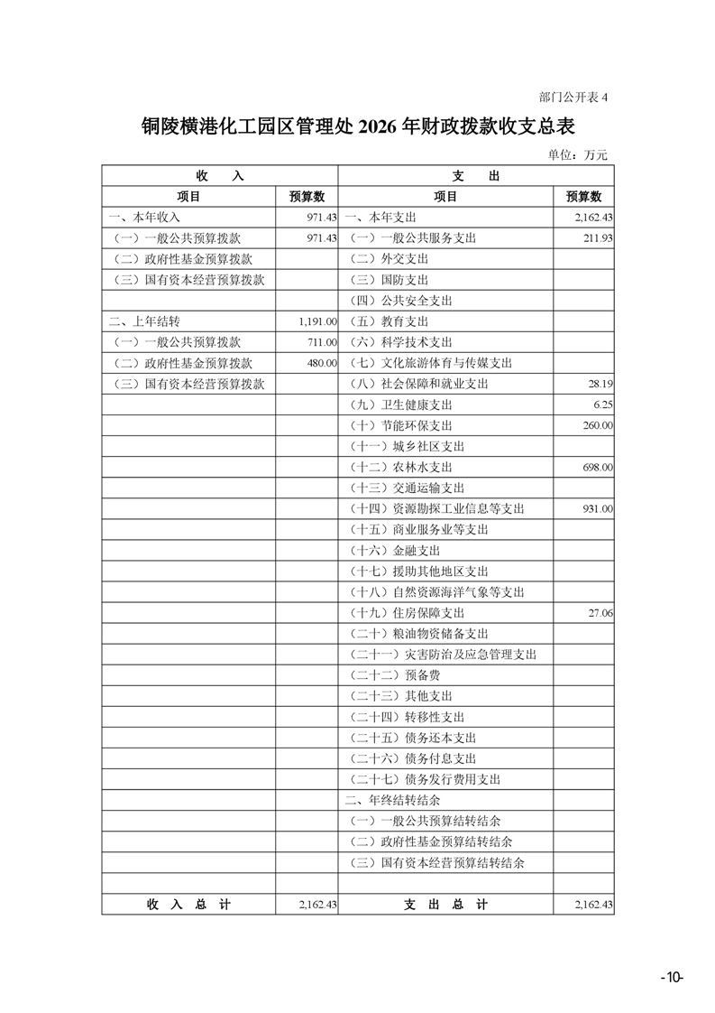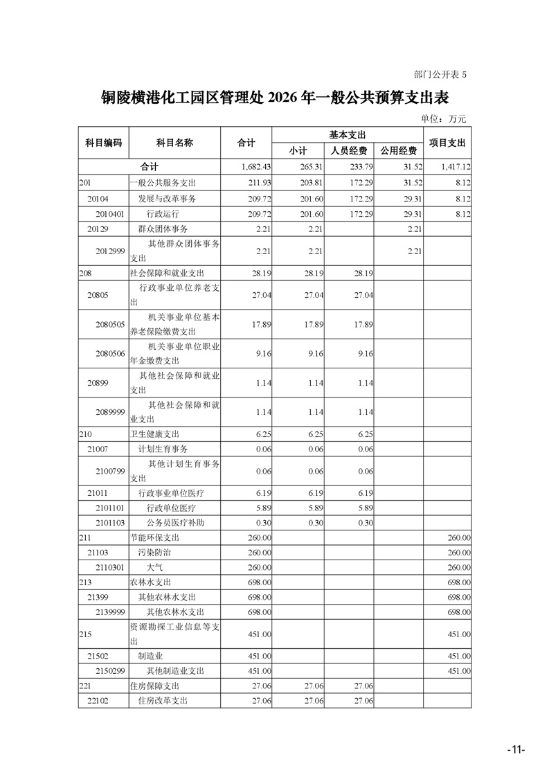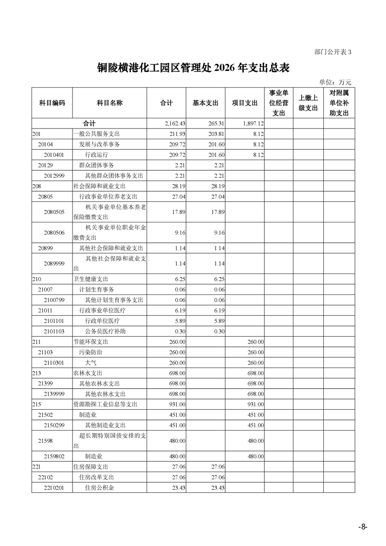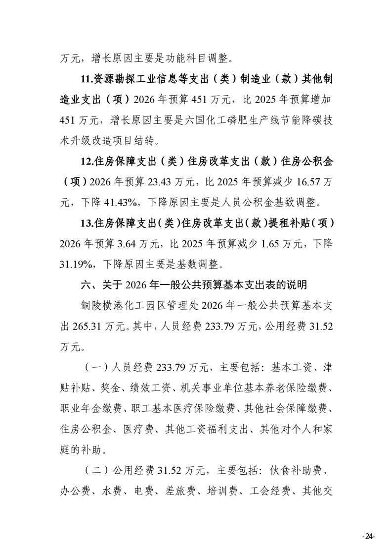 铜陵横港化工园区管理处2026年部门预算-铜官区人民政府