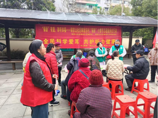 2026年3月3日是第二十七个全国爱耳日,今年的主题为“全民科学爱耳,共护听力健康”,3月5日是学雷锋纪念日。为弘扬雷锋精神,增强老年群体听力健康意识,营造关爱听力、敬老助残的良好氛围,铜官山社区解放东村服务站以爱耳日为契机,联合社区残协、辖区卫生服务站及市立医院五官科专家,依托解放东村“银龄”小螺号志愿服务队,在解放东村小广场开展“银龄”有爱,聆听幸福——爱耳日义诊暨“3·5学雷锋”主题志愿服务活动,将健康科普、听力筛查与便民服务送到居民家门口。