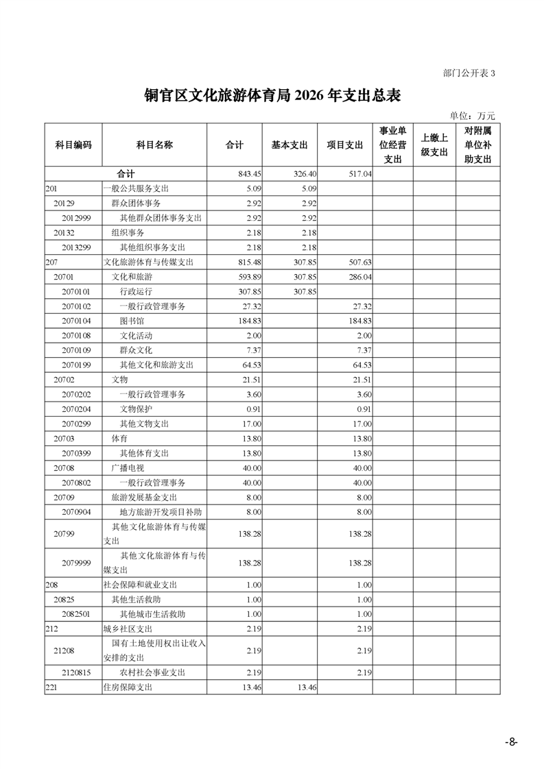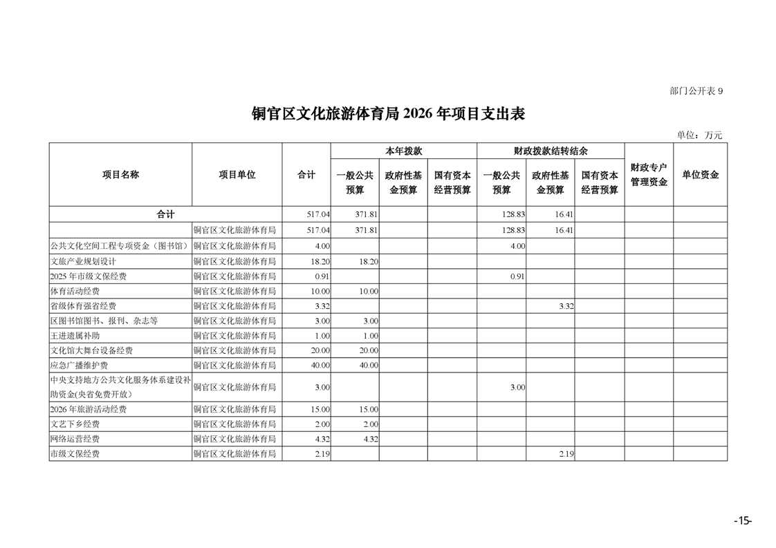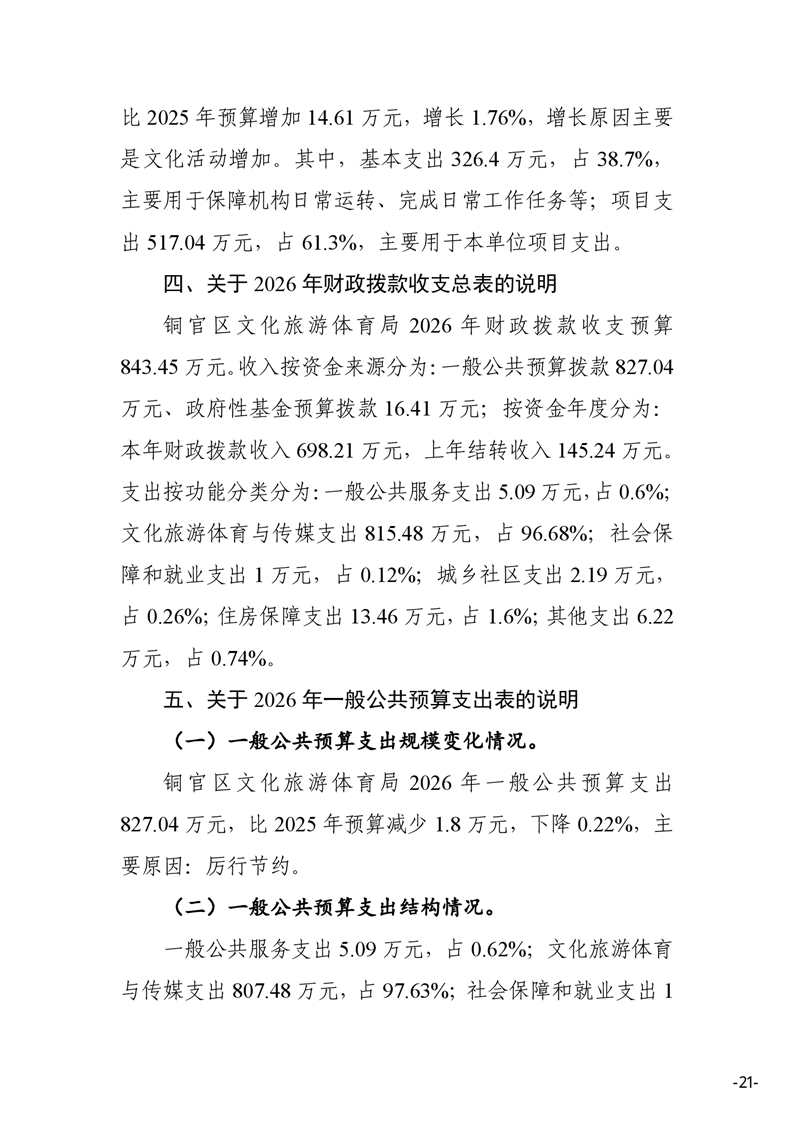 铜官区文化旅游体育局2026年部门预算公开-铜官区人民政府