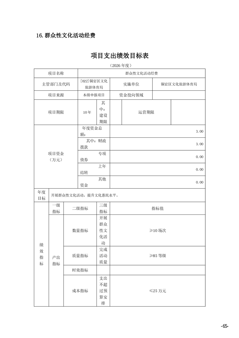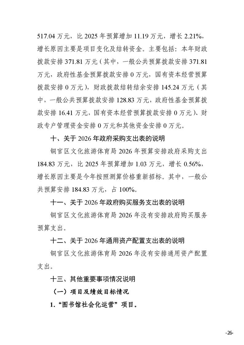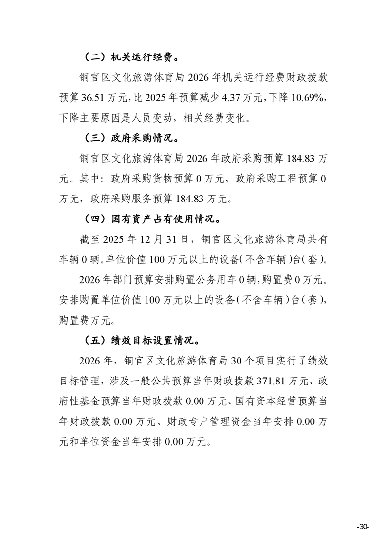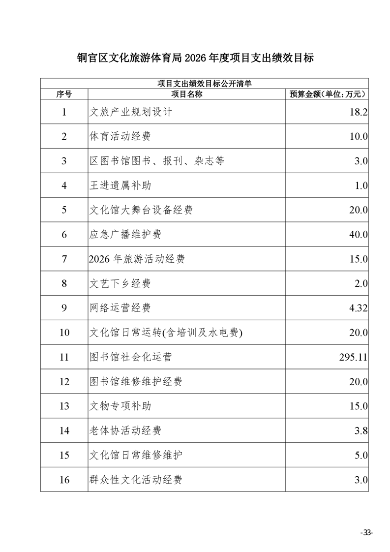 铜官区文化旅游体育局2026年部门预算公开-铜官区人民政府