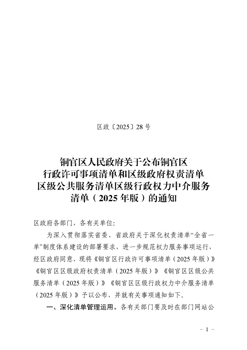 铜官区人民政府关于公布铜官区行政许可事项清单和区级政府权责清单区级公共服务清单区级行政权力中介服务清单(2025年版)的通知