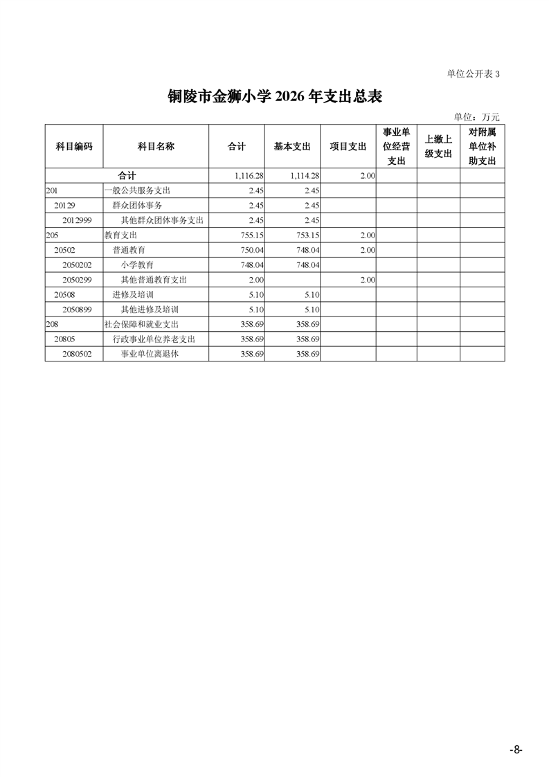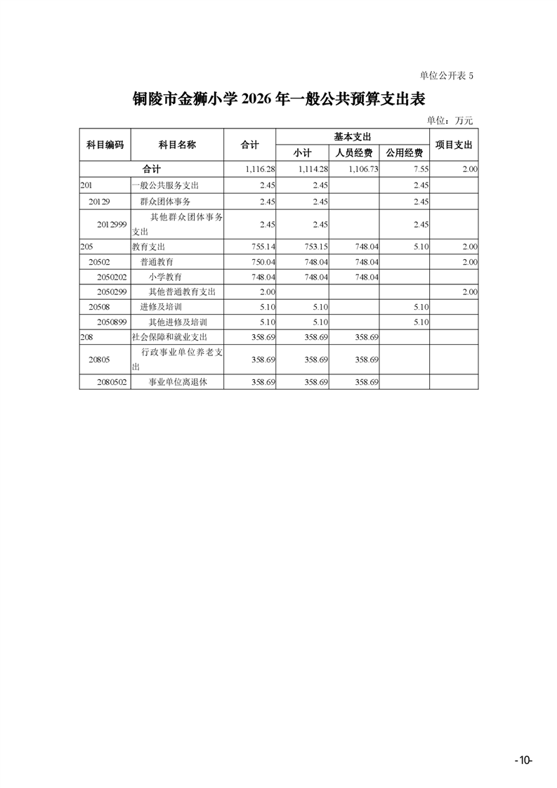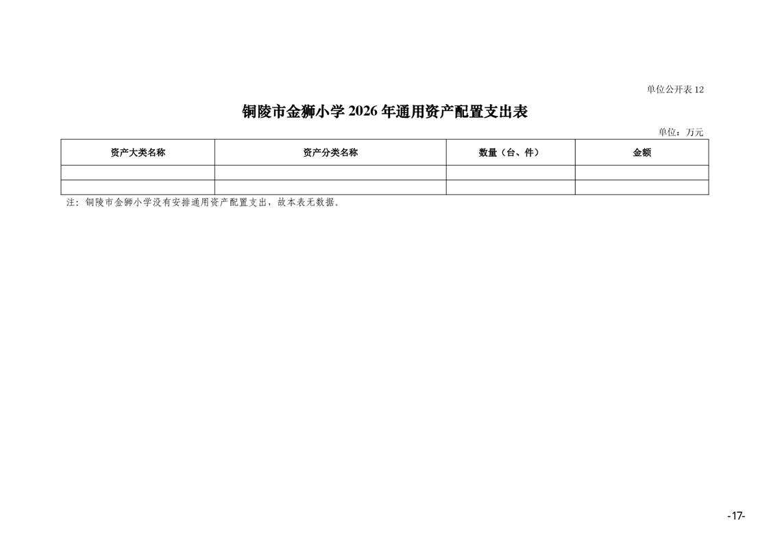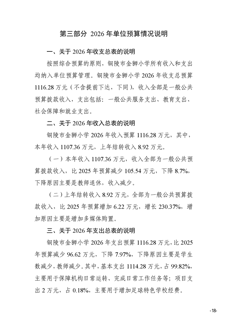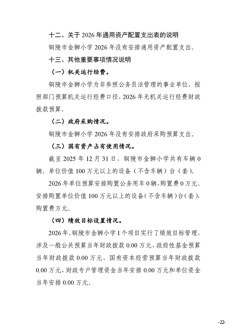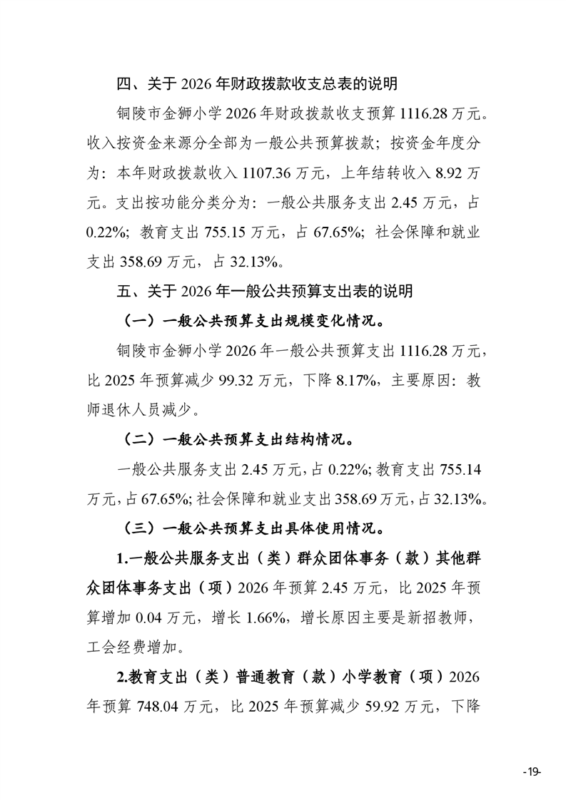 铜陵市金狮小学2026年度预算信息公开-铜官区人民政府