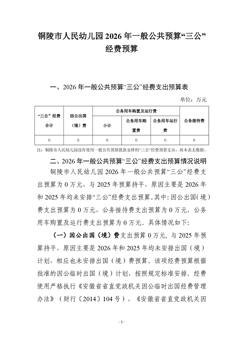 铜陵市人民幼儿园 2026 年一般公共预算“三公”经费预算-铜官区人民政府