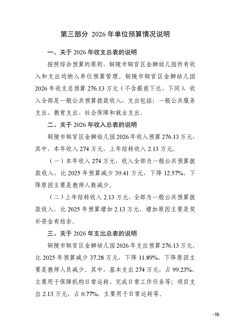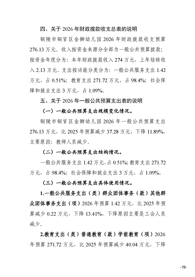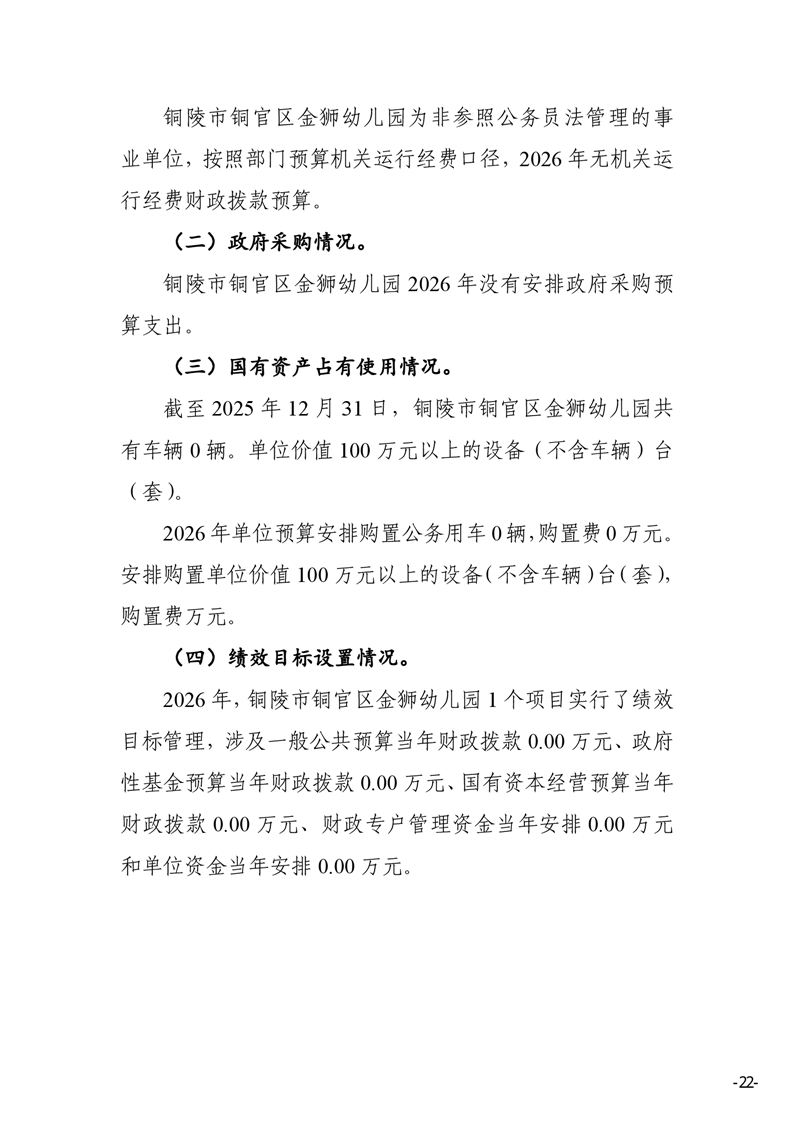 铜陵市铜官区金狮幼儿园2026年预算-铜官区人民政府