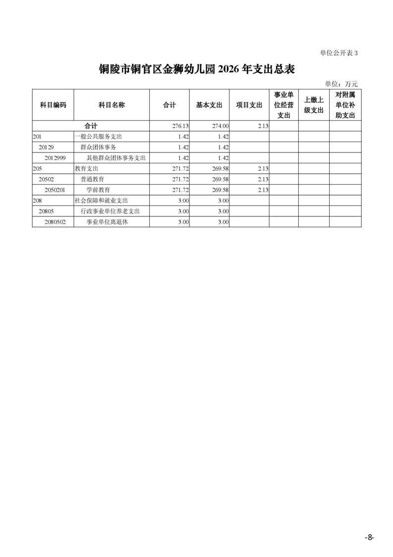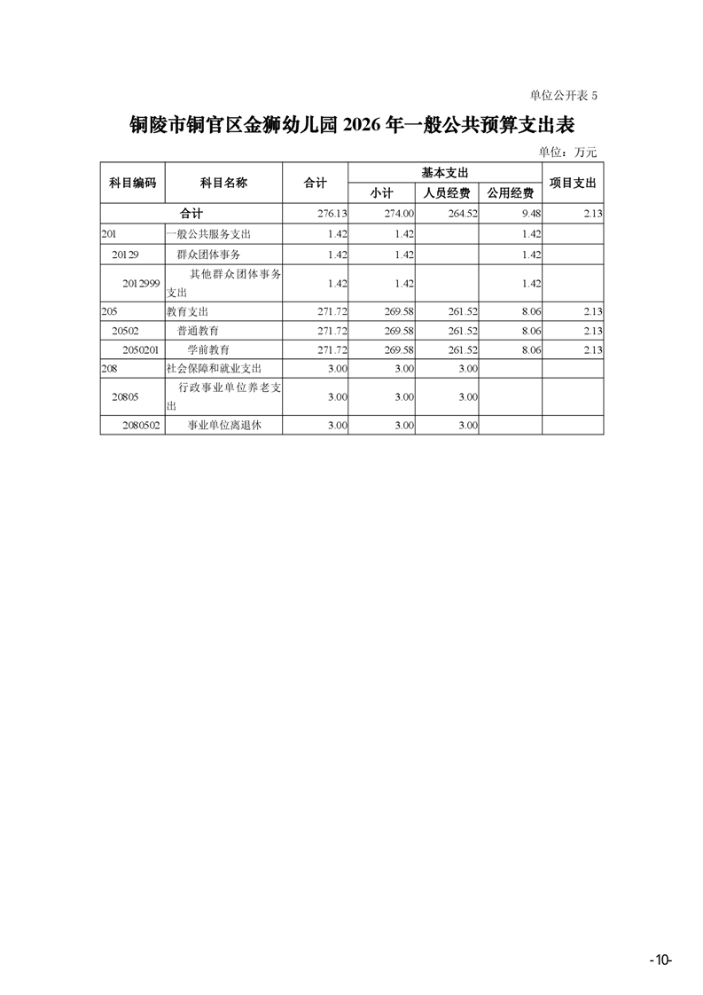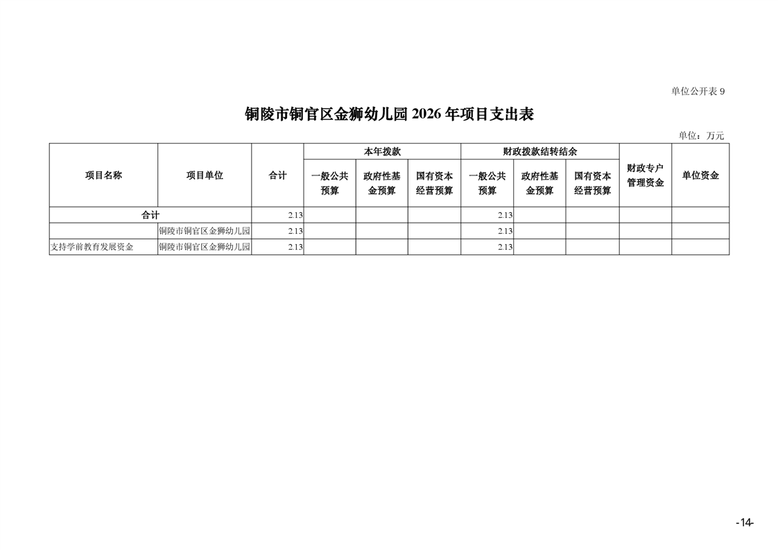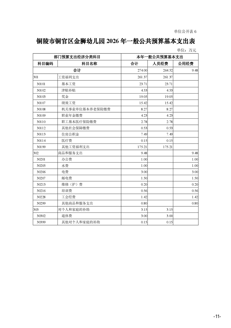 铜陵市铜官区金狮幼儿园2026年预算-铜官区人民政府